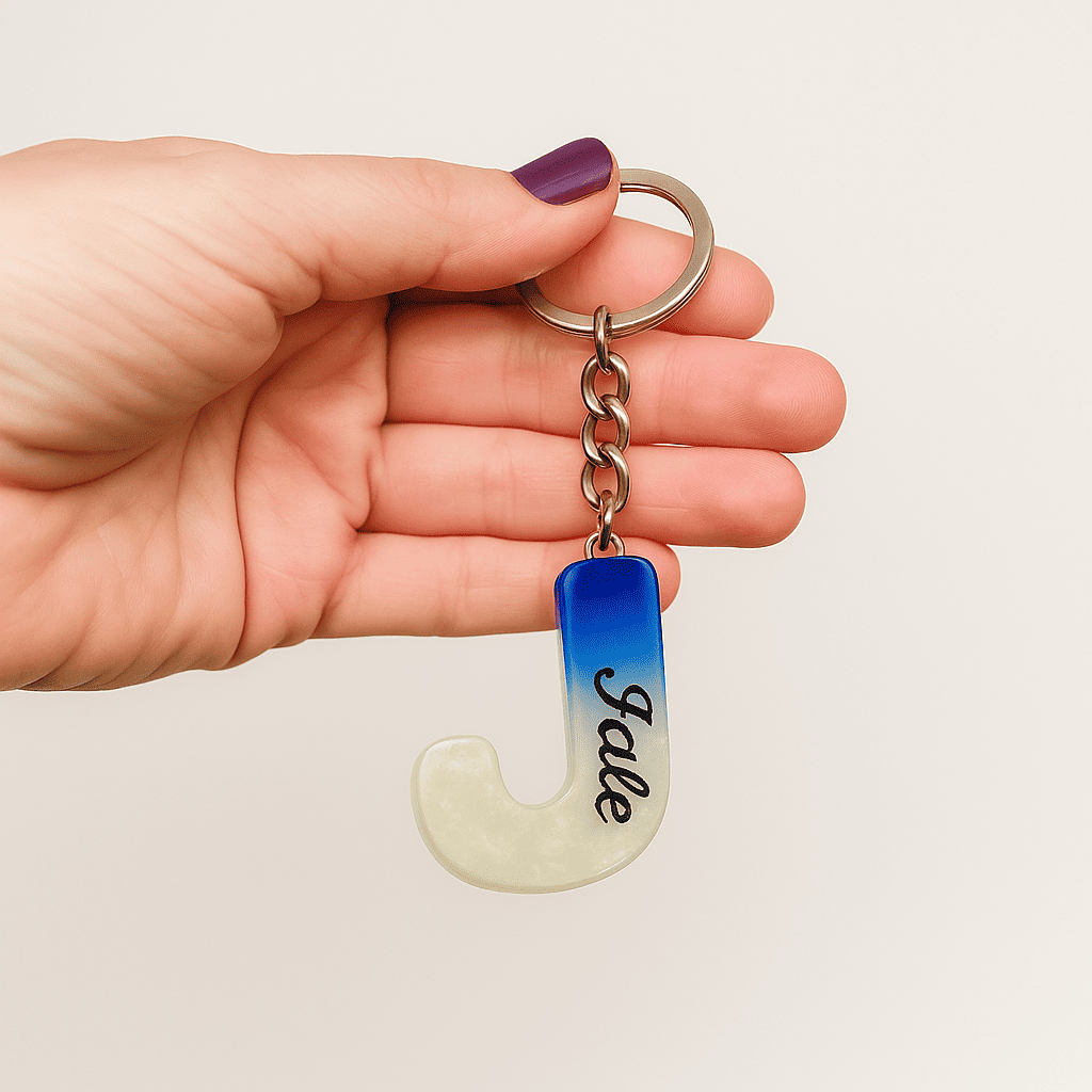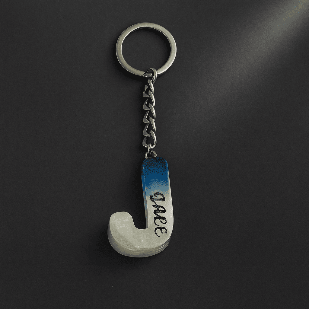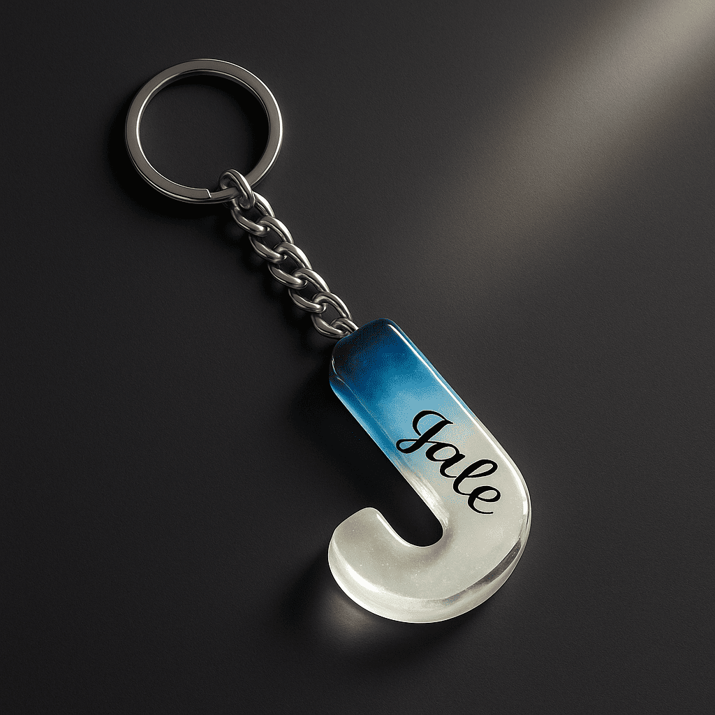 J Harfi - Kişiye Özel - Epoksi Reçine Anahtarlık - El Yapımı - Çelik Tokalı