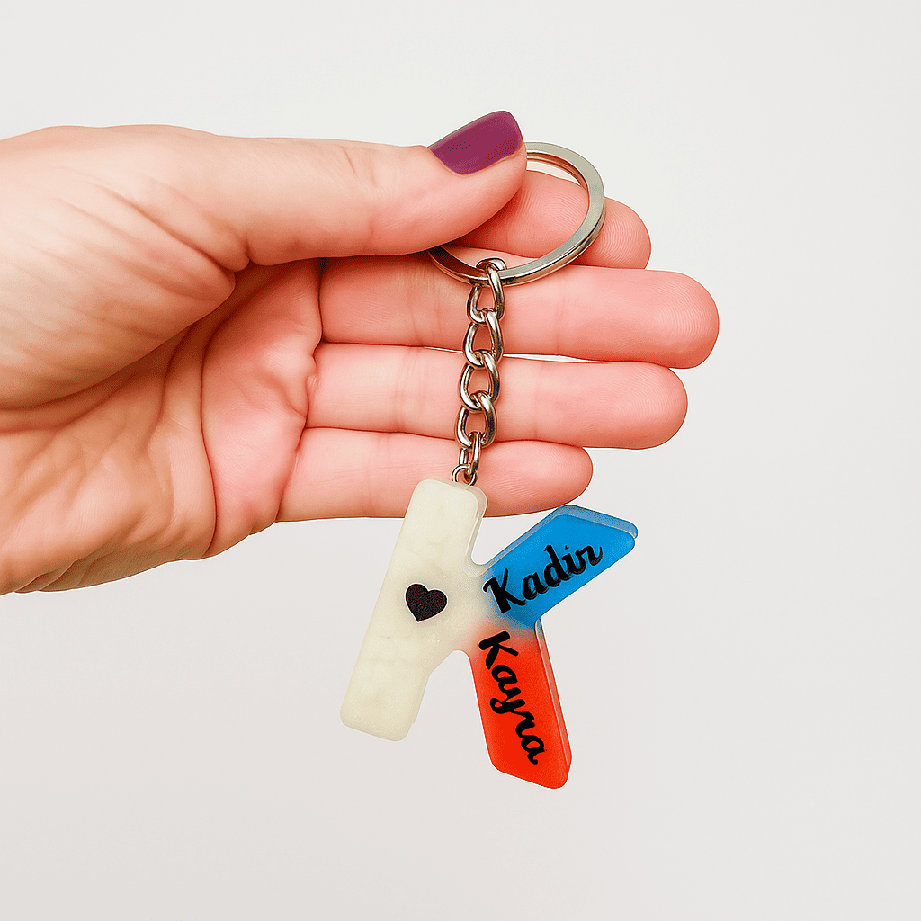 Kişiye özel harf tasarımlı epoksi reçine anahtarlık ile sevdiklerinize özel ve anlamlı bir hediye verin. El yapımı üretilen bu şık anahtarlık, dayanıklı çelik tokası ve parlak görünümüyle günlük kullanıma uygundur. Harf seçeneğiyle size veya sevdiklerinize özel bir dokunuş katar.