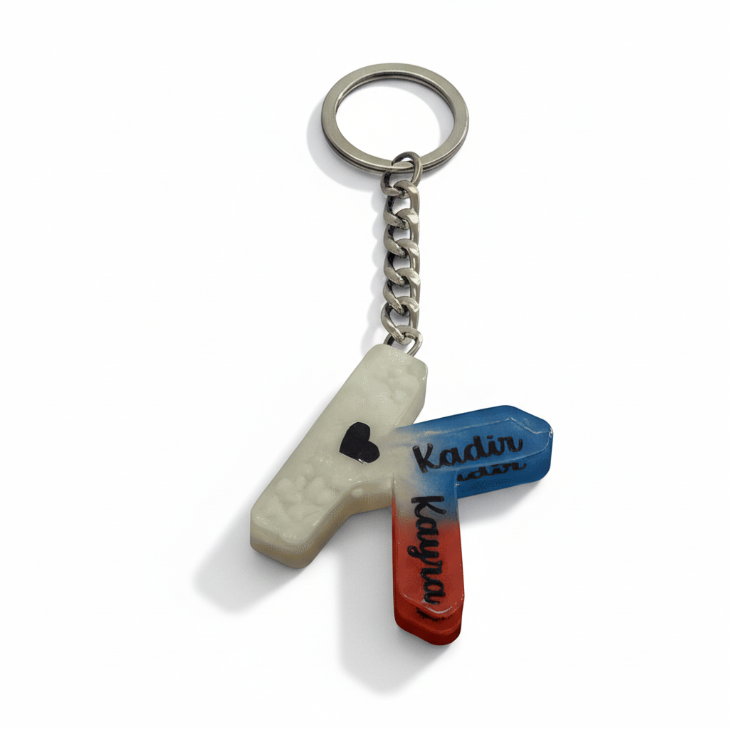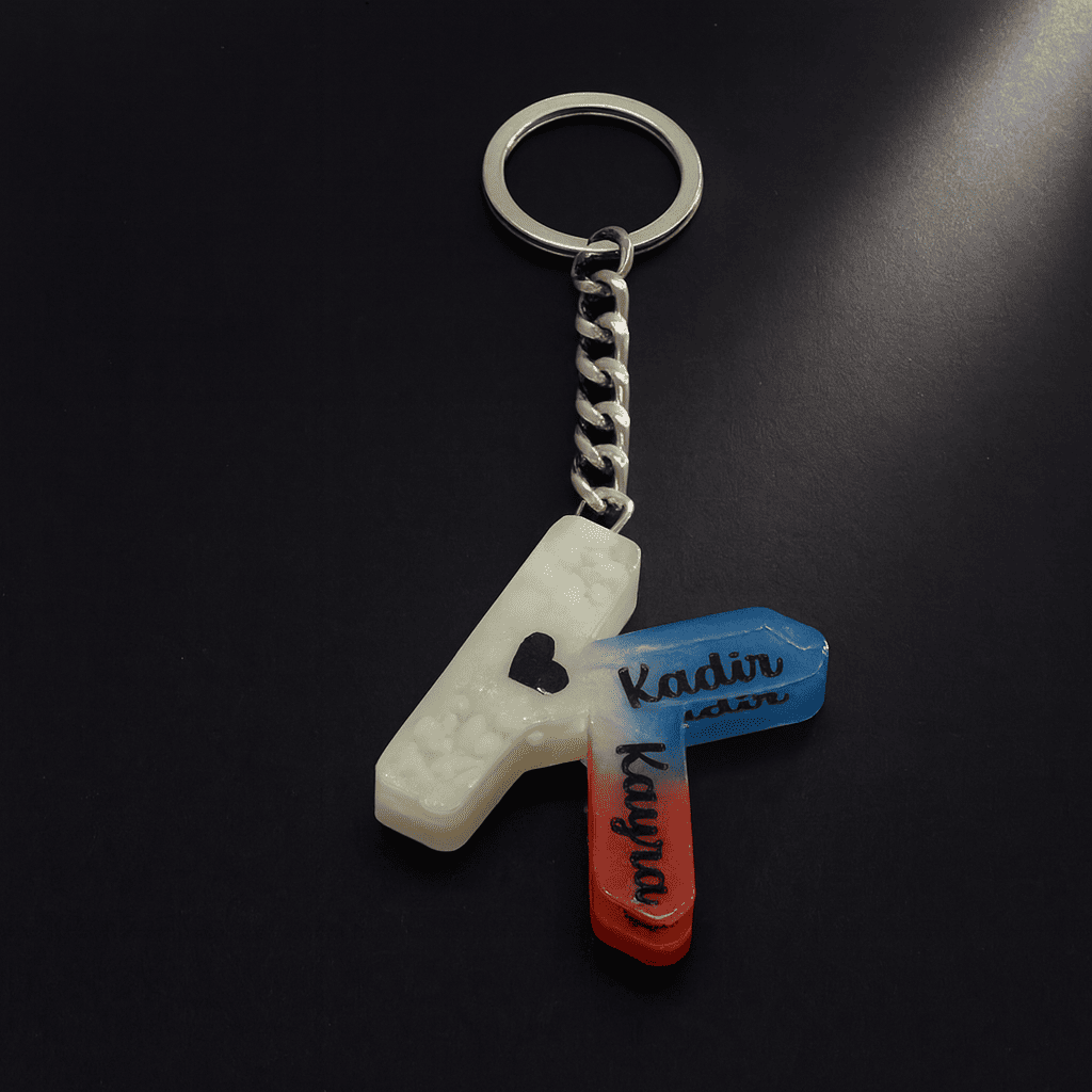 K Harfi - Kişiye Özel - Epoksi Reçine Anahtarlık - El Yapımı - Çelik Tokalı