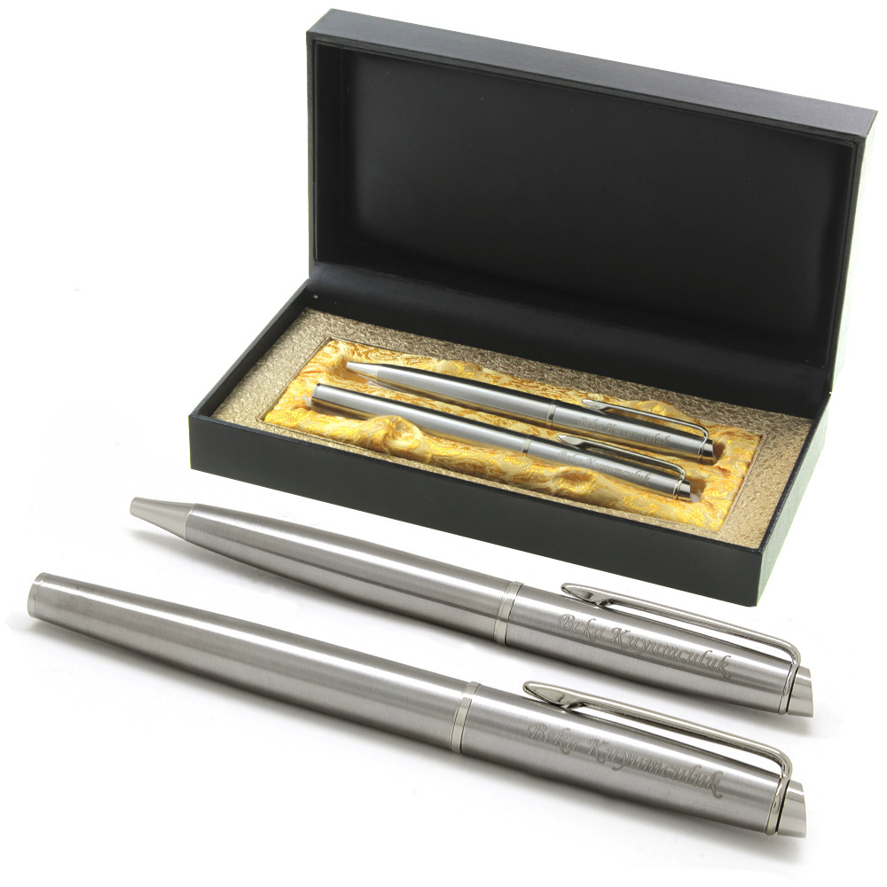 Mavi Mürekkep İsme Özel Krom Roller Tükenmez Kalem Seti