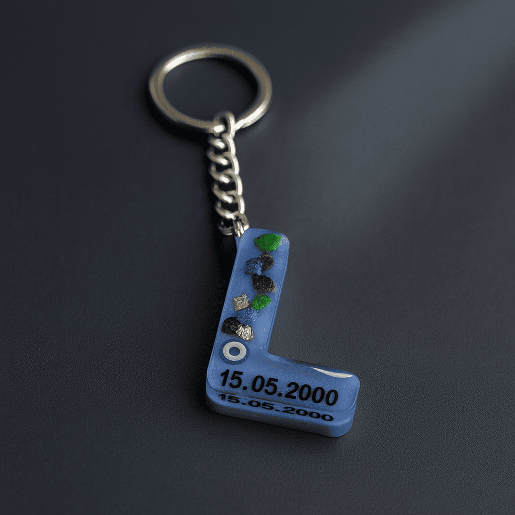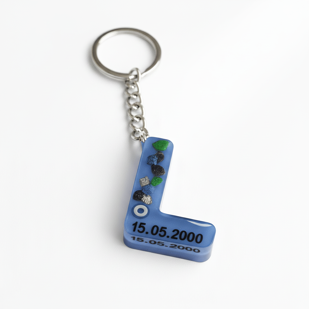 L Harfi - Kişiye Özel - Epoksi Reçine Anahtarlık - El Yapımı - Çelik Tokalı