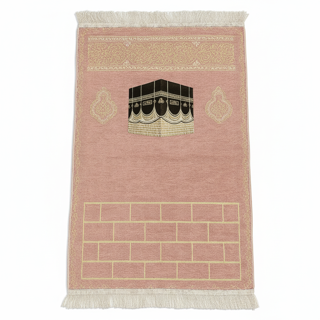Kişiye Özel Nakış İşlemeli Kabe Motifli Saçaklı Pembe Renk Hediyelik Seccade