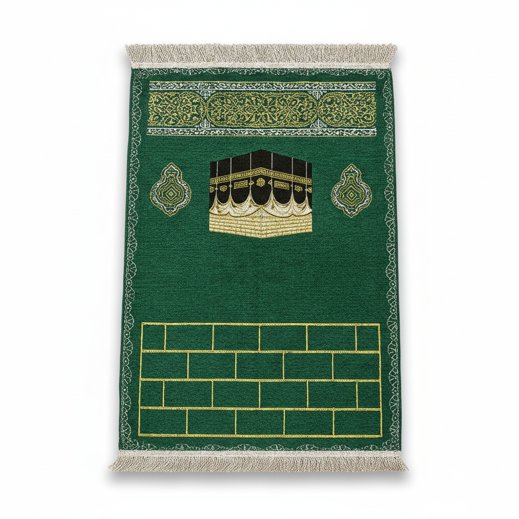 Kişiye Özel Nakış İşlemeli Kabe Motifli Saçaklı Yeşil Renk Hediyelik Seccade