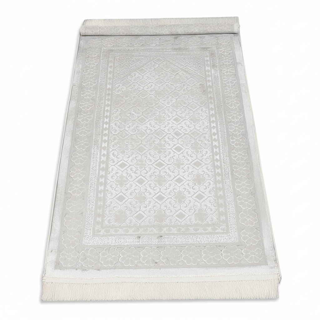 Kişiye Özel Nakış İşlemeli Saf İpek Kadife Kumaştan Beyaz Renk Hediyelik Seccade