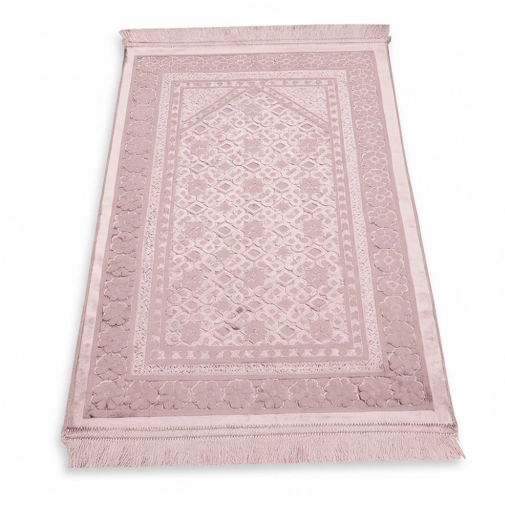 Kişiye Özel Nakış İşlemeli Saf İpek Kadife Kumaştan Pembe Renk Hediyelik Seccade