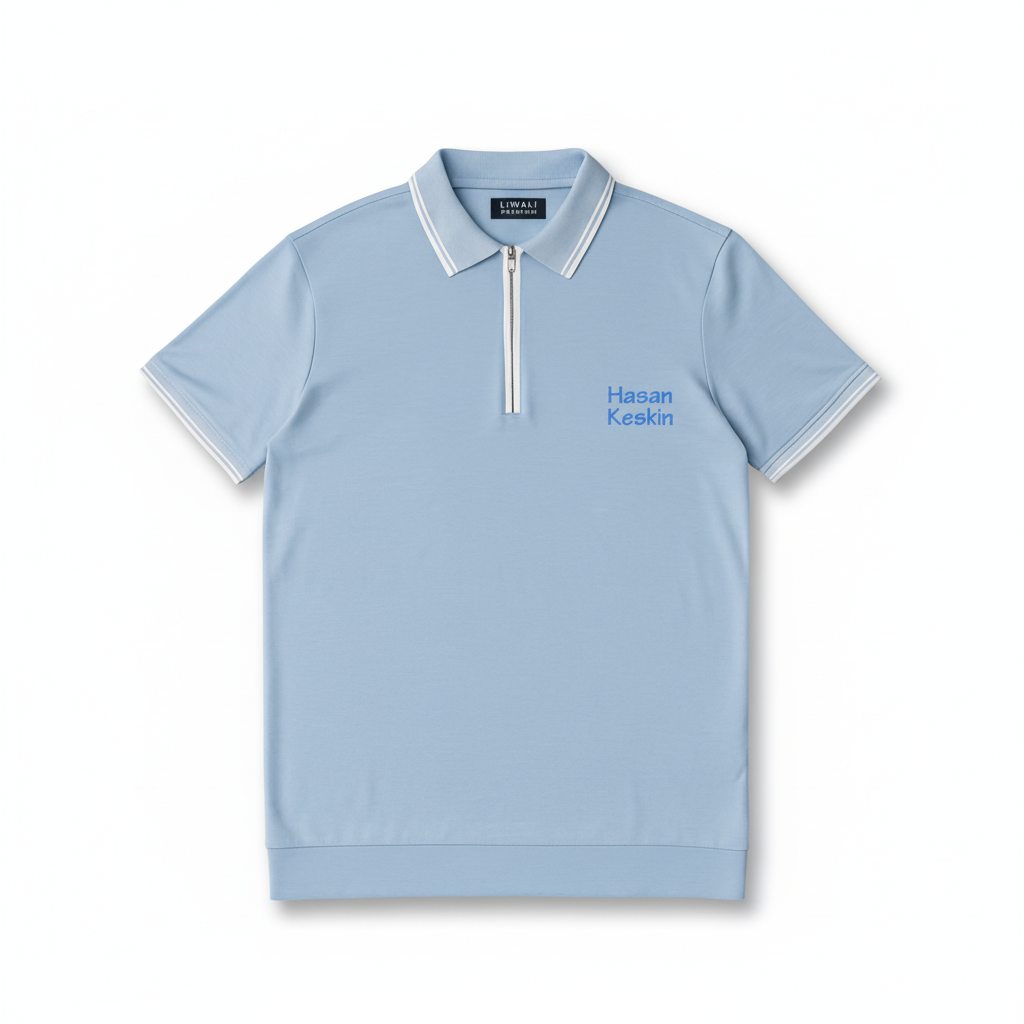 Kişiye Özel Nakışlı Kısa Kollu Ribana Yaka Likralı Premium Mavi Tişört 3XL