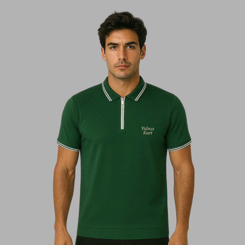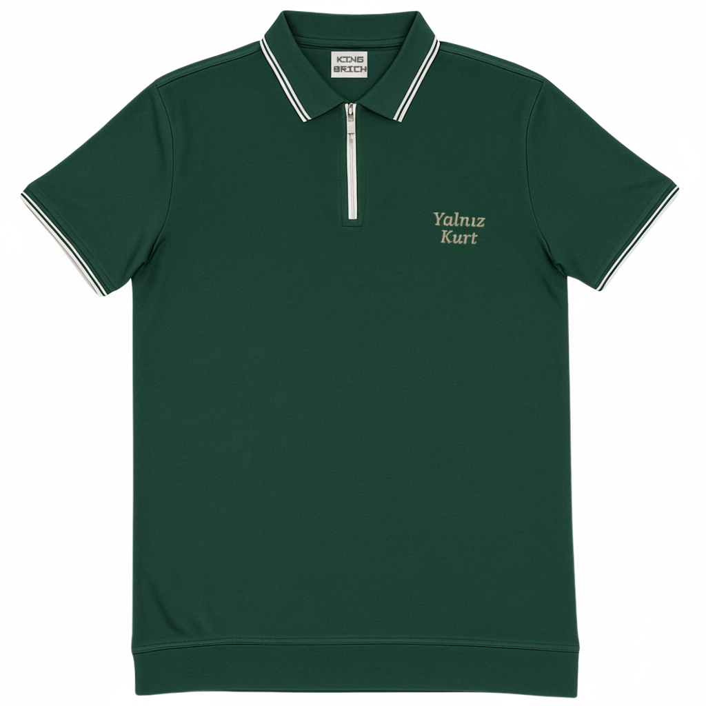 Kişiye Özel Nakışlı Kısa Kollu Ribana Yaka Likralı Premium Yeşil Tişört 2XL