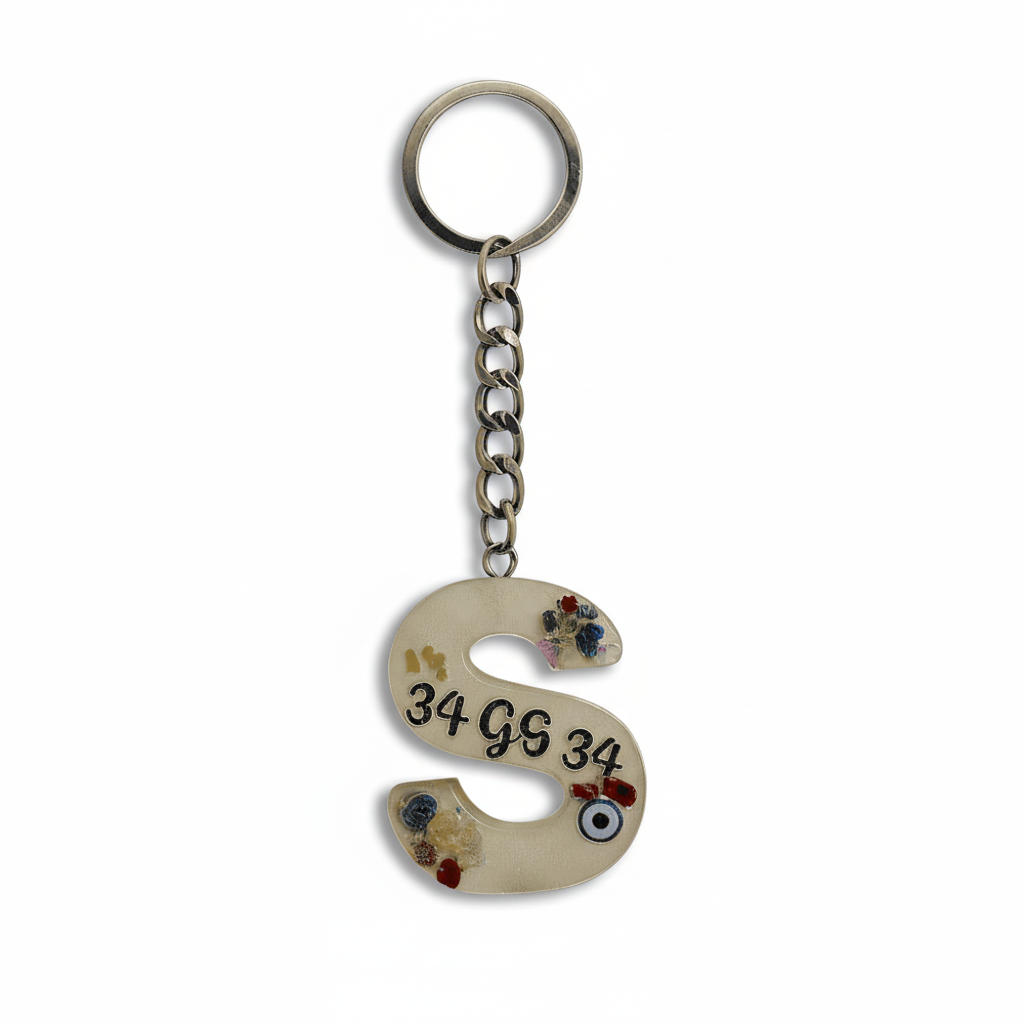 S Harfi - Kişiye Özel - Epoksi Reçine Anahtarlık - El Yapımı - Çelik Tokalı