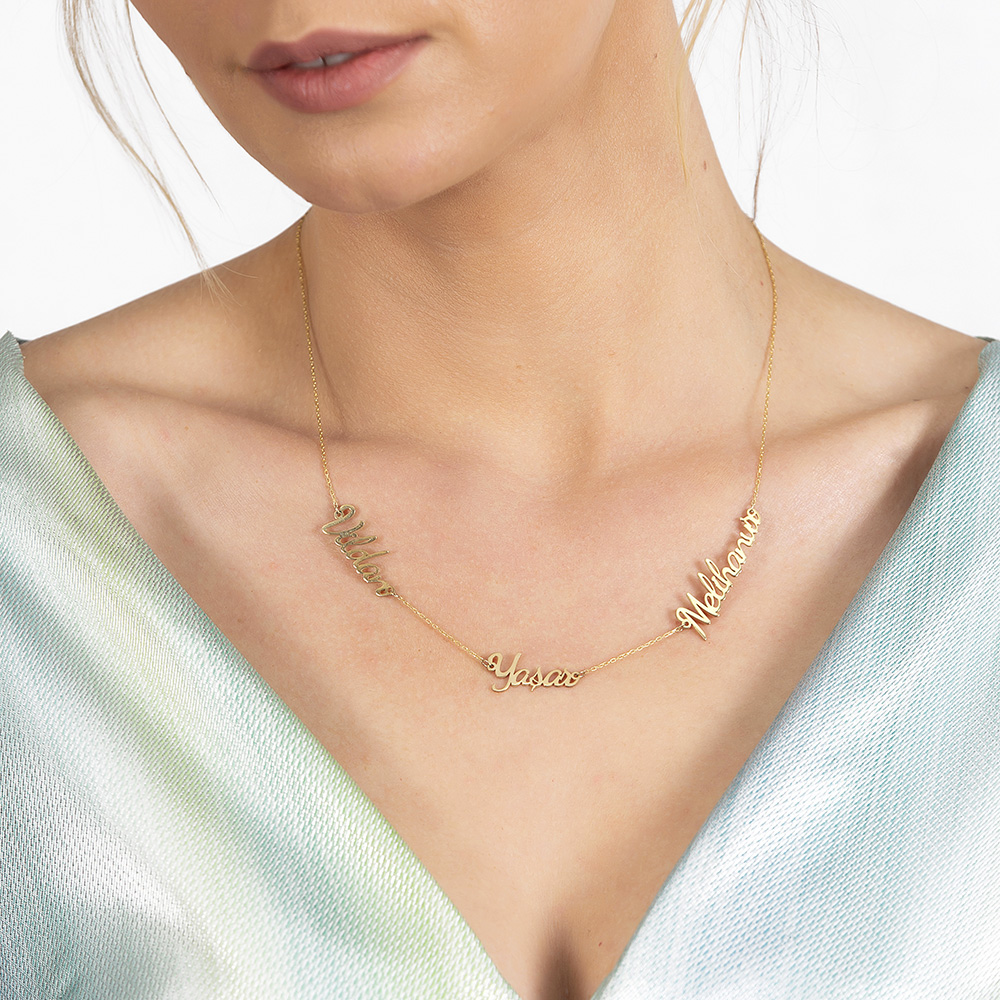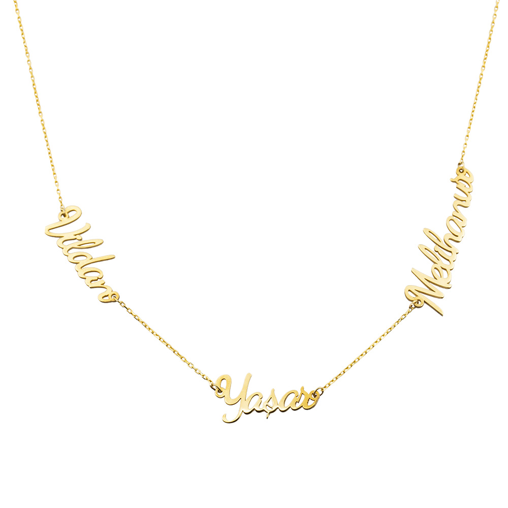 Kişiye Özel Üç İsim Yazılı Altın Renk 925 Ayar Gümüş Bayan Kolye