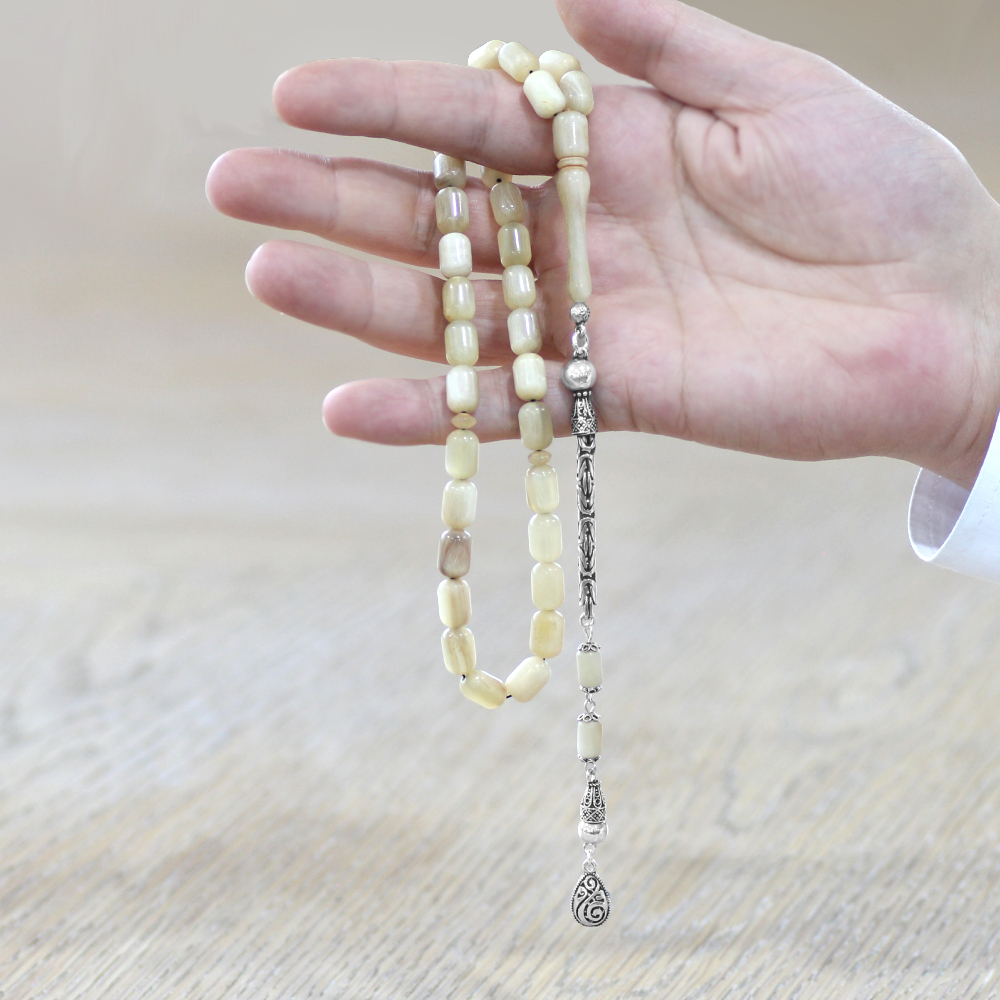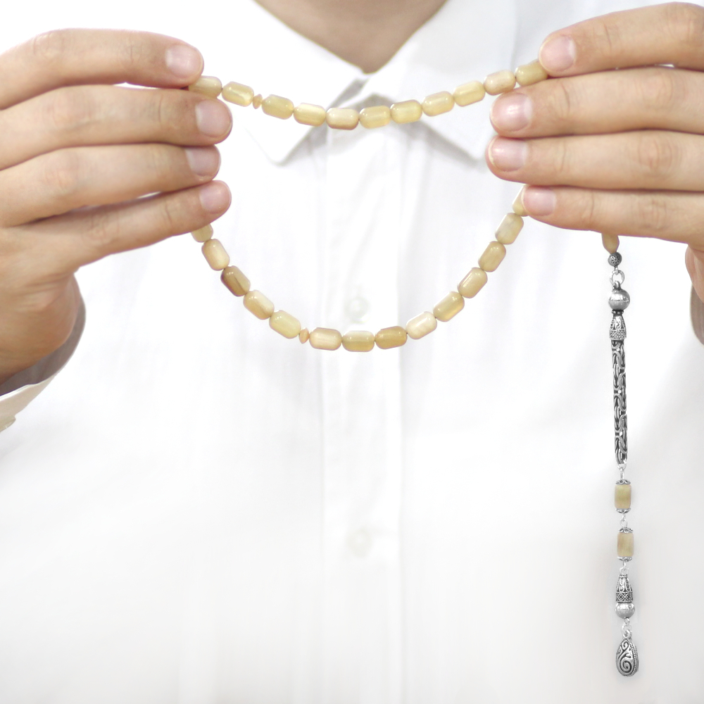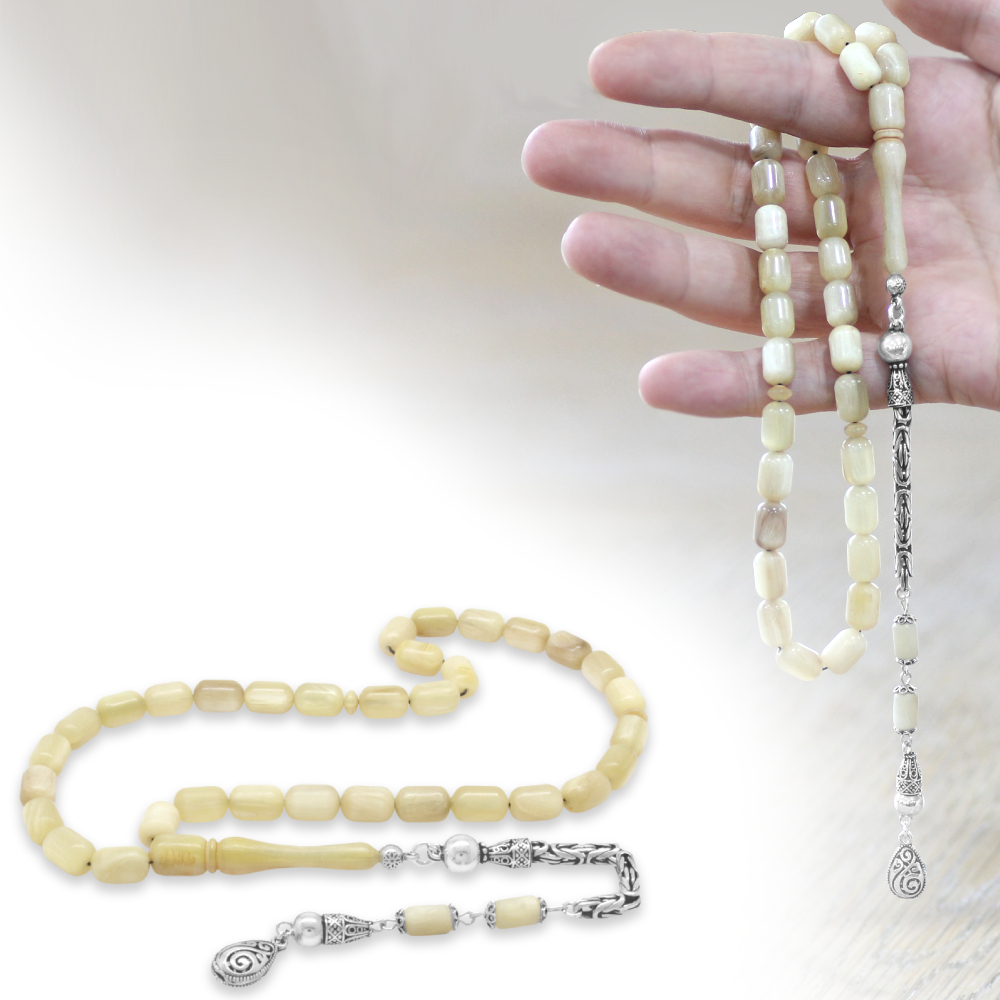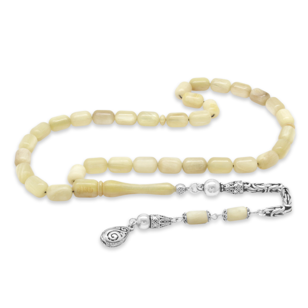 Koç Boynuzu Tesbih - 925 Ayar Gümüş Kral Zincir Püsküllü - Krem Rengi - Kapsül Kesim