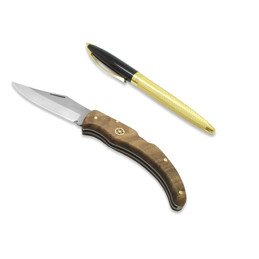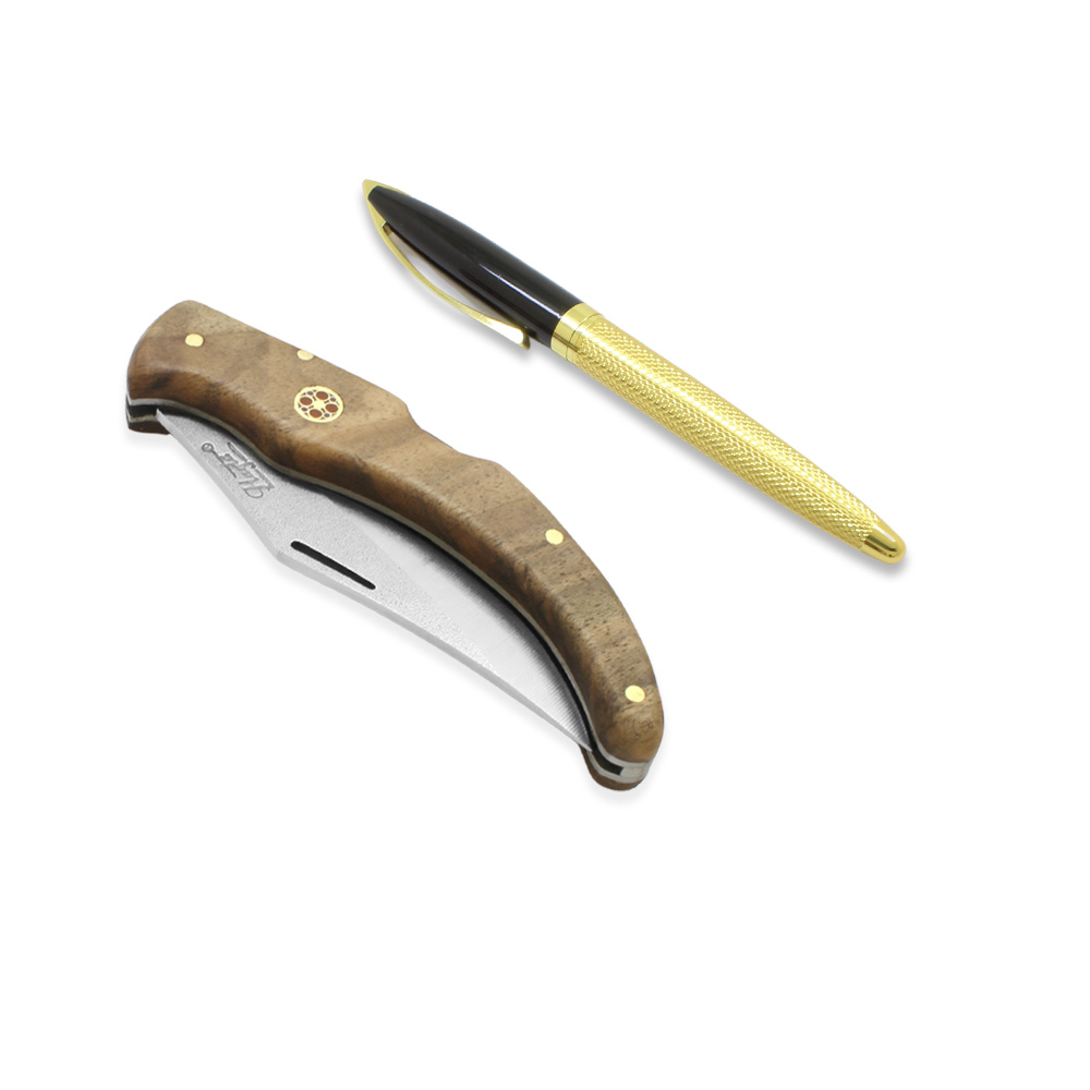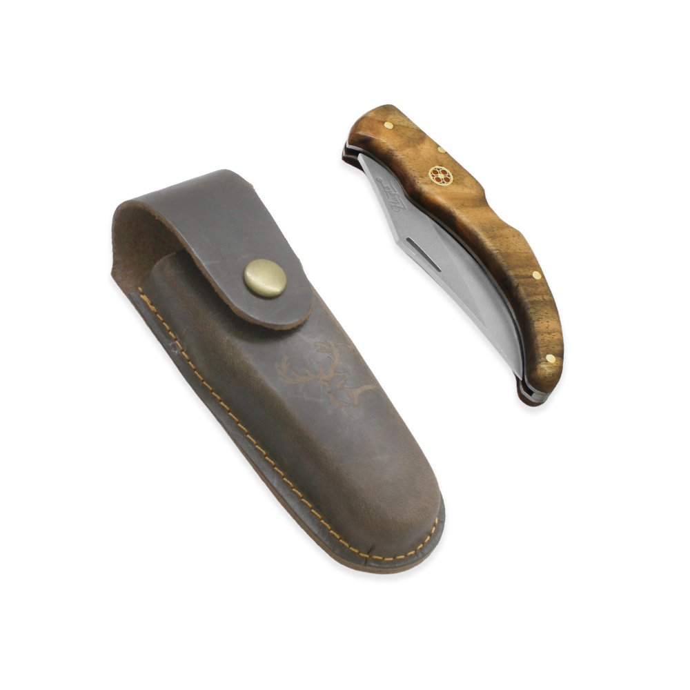 Ceviz Ağacı Saplı Hayta Model Kilit Mekanizmalı İsme Özel 4116 Karartılmış Çelik Avcı Kamp Bıçağı