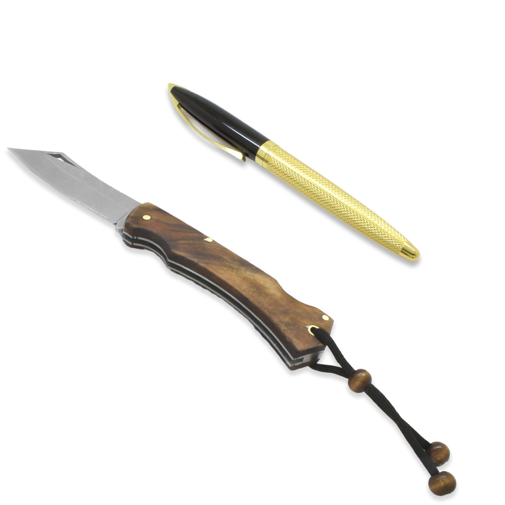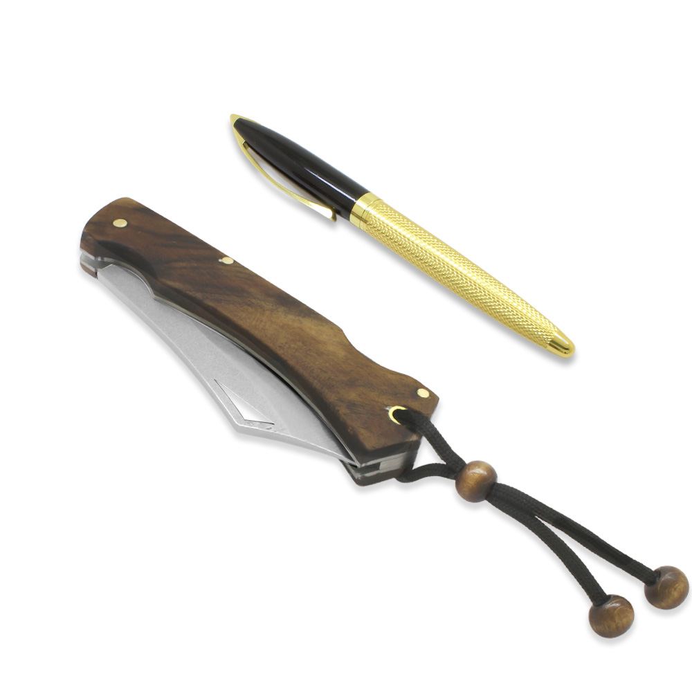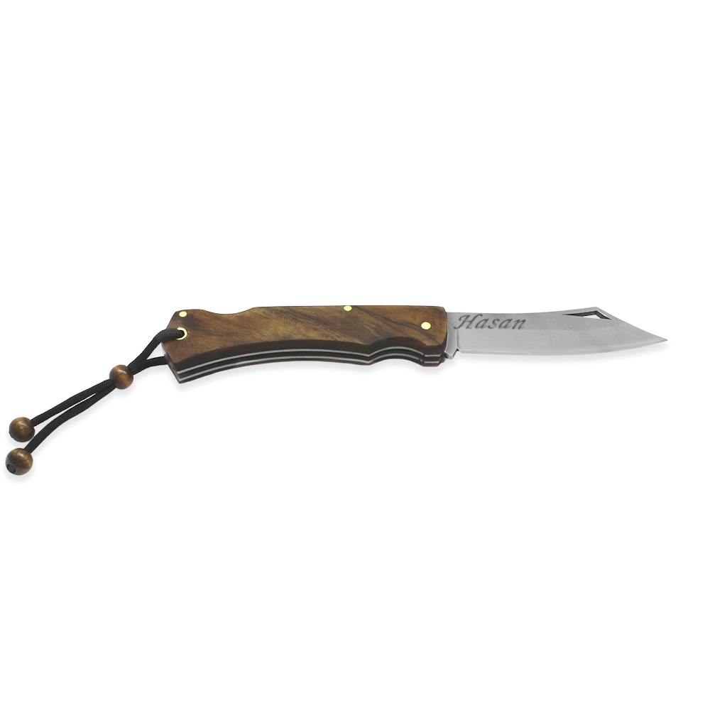 Ceviz Ağacı Saplı Ustra Model Kilit Mekanizmalı İsme Özel 4116 Karartılmış Çelik Avcı Kamp Bıçağı