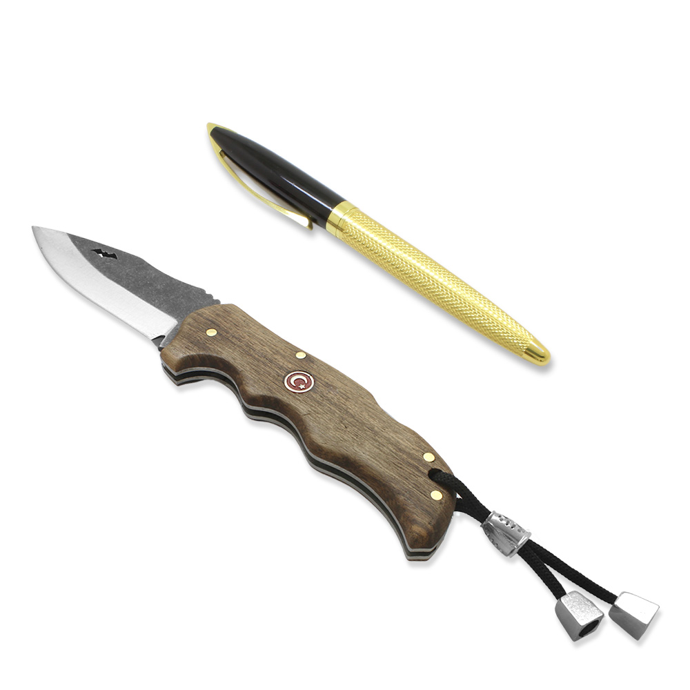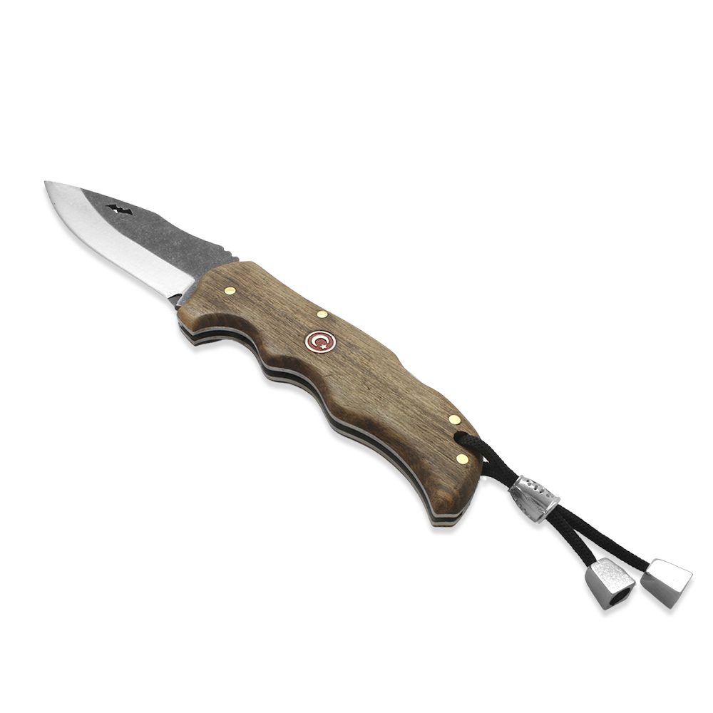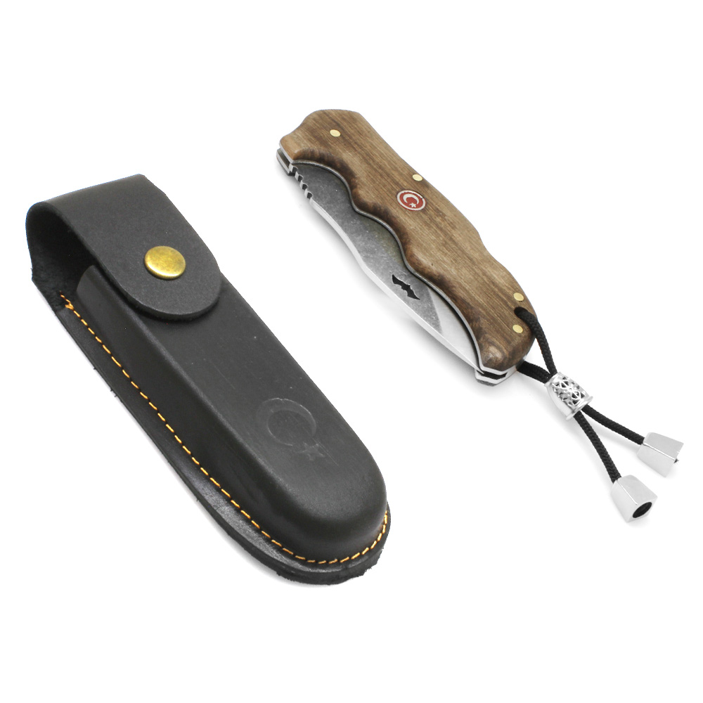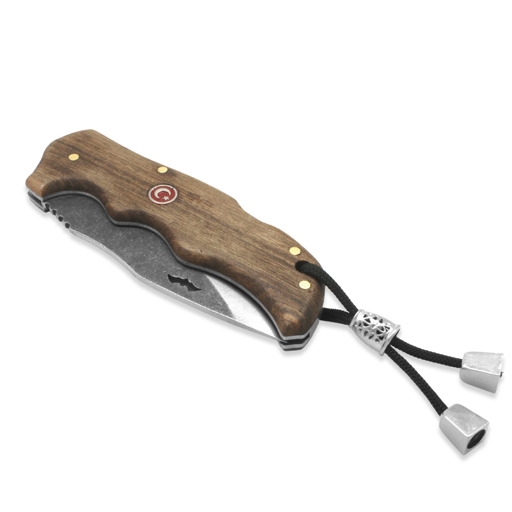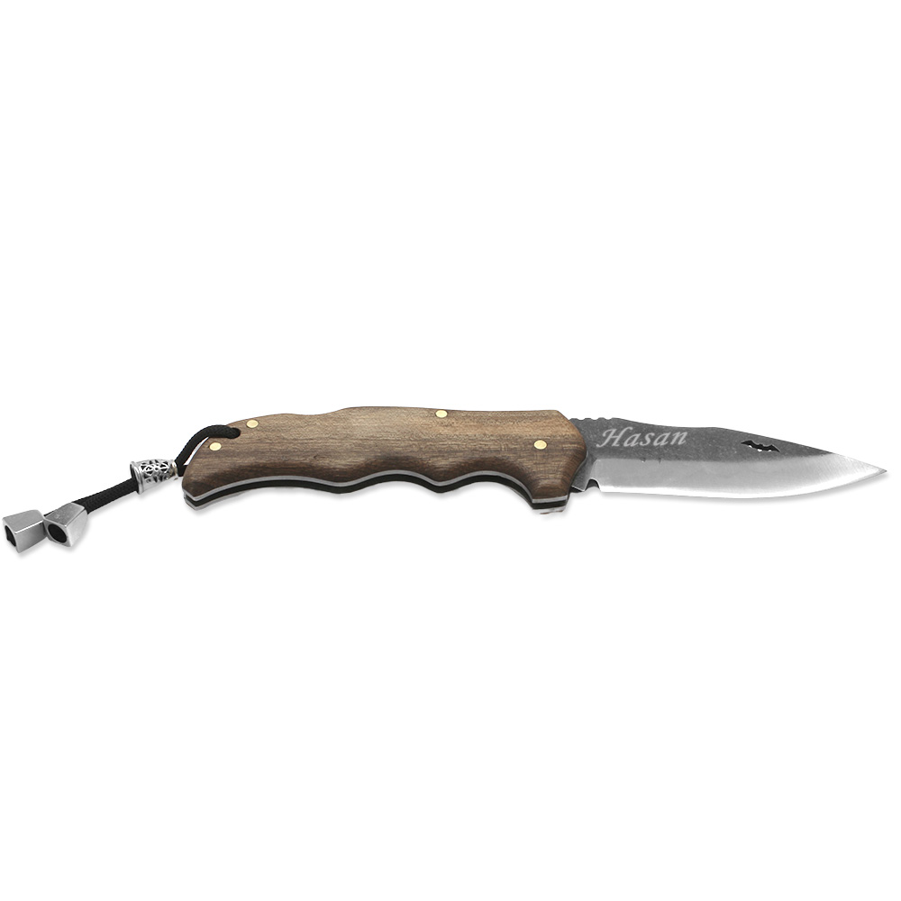 Ceviz Ağacı Saplı Yarasa Model Kilit Mekanizmalı İsme Özel 4034 Karartılmış Çelik Avcı Kamp Bıçağı