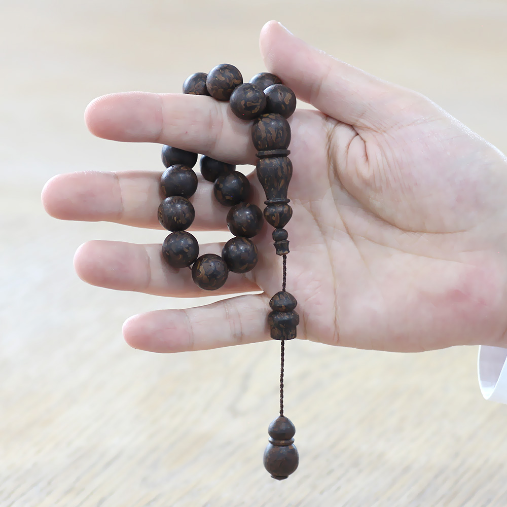 Kokulu Kahve Ağacı Efe Tesbih - Preslenmiş - Sistemli - Usta İşçilikli - Kahverengi - Küre Kesim