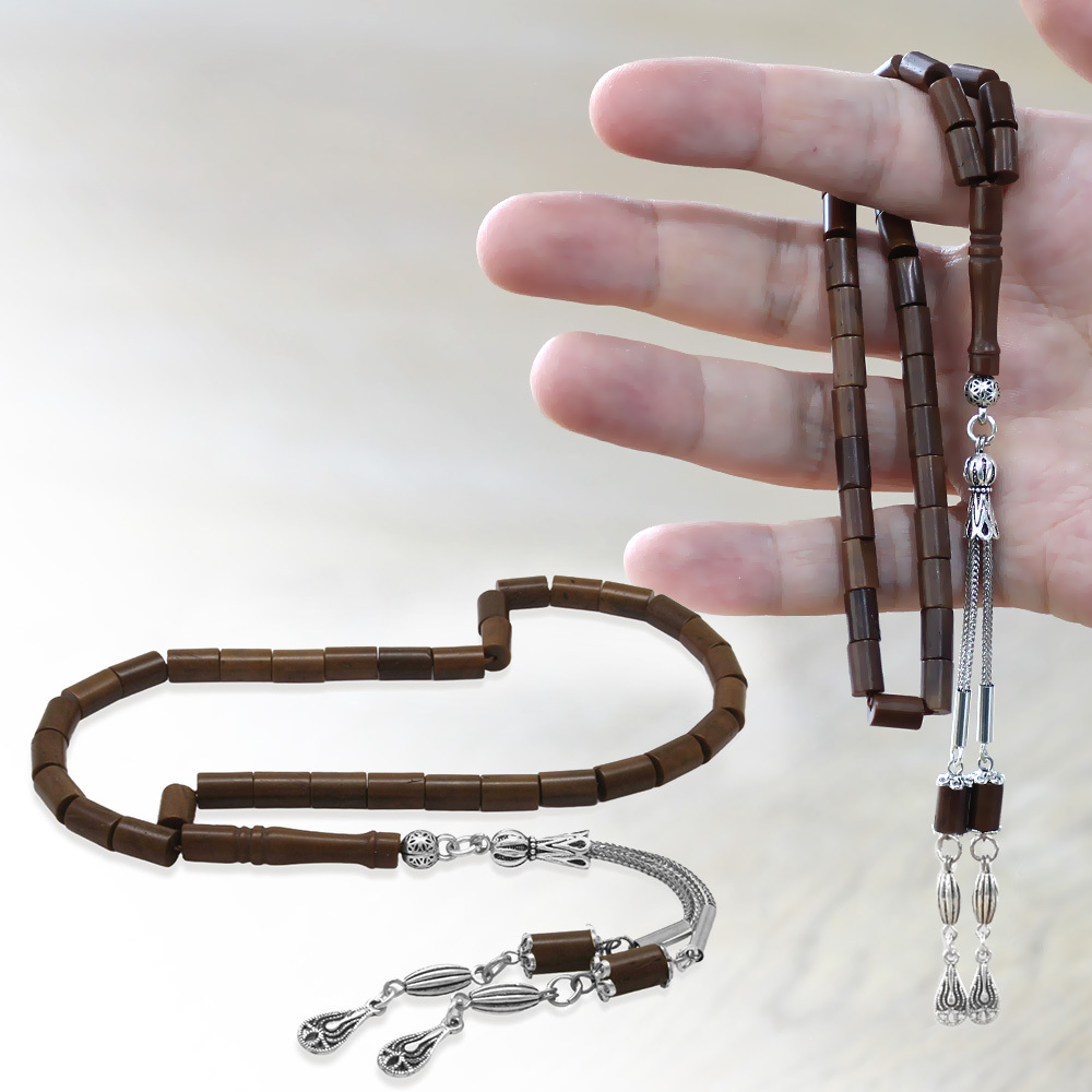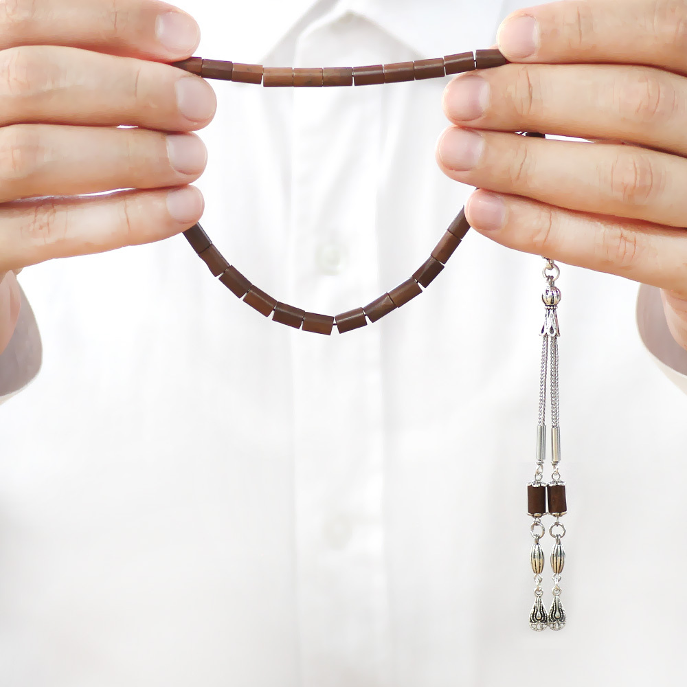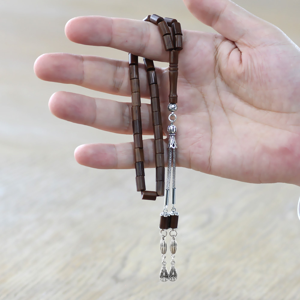 Kuka Tesbih - Kararmaz Metal Arnavut Zincir Püsküllü - Kahverengi - Kesme Kesim