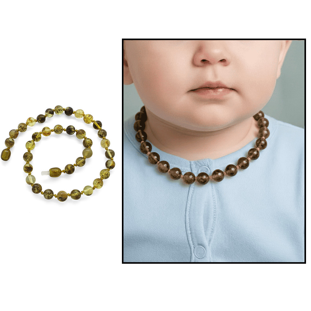 Küre Form Doğal Damla Kehribar Taşlı Hareli Maxi Boy Bebek Diş Kolyesi - 1