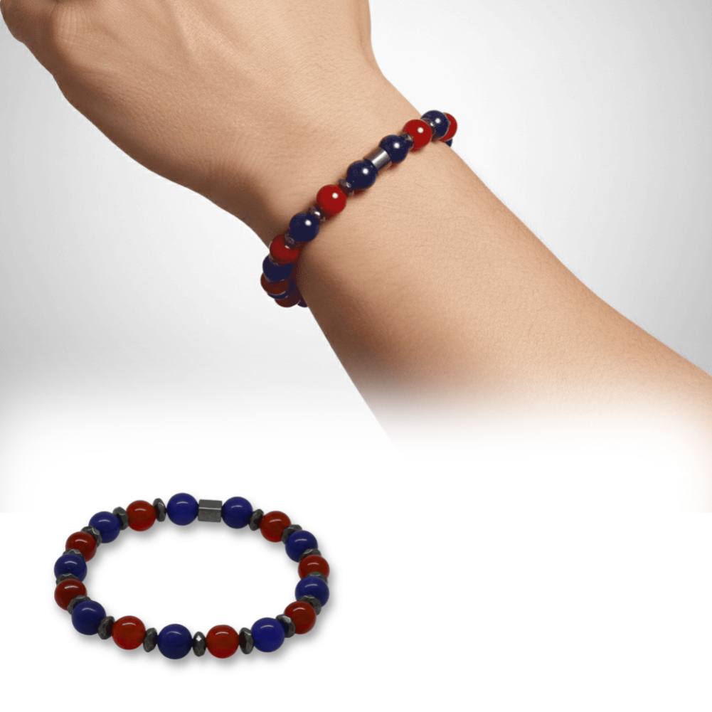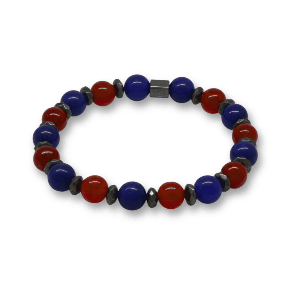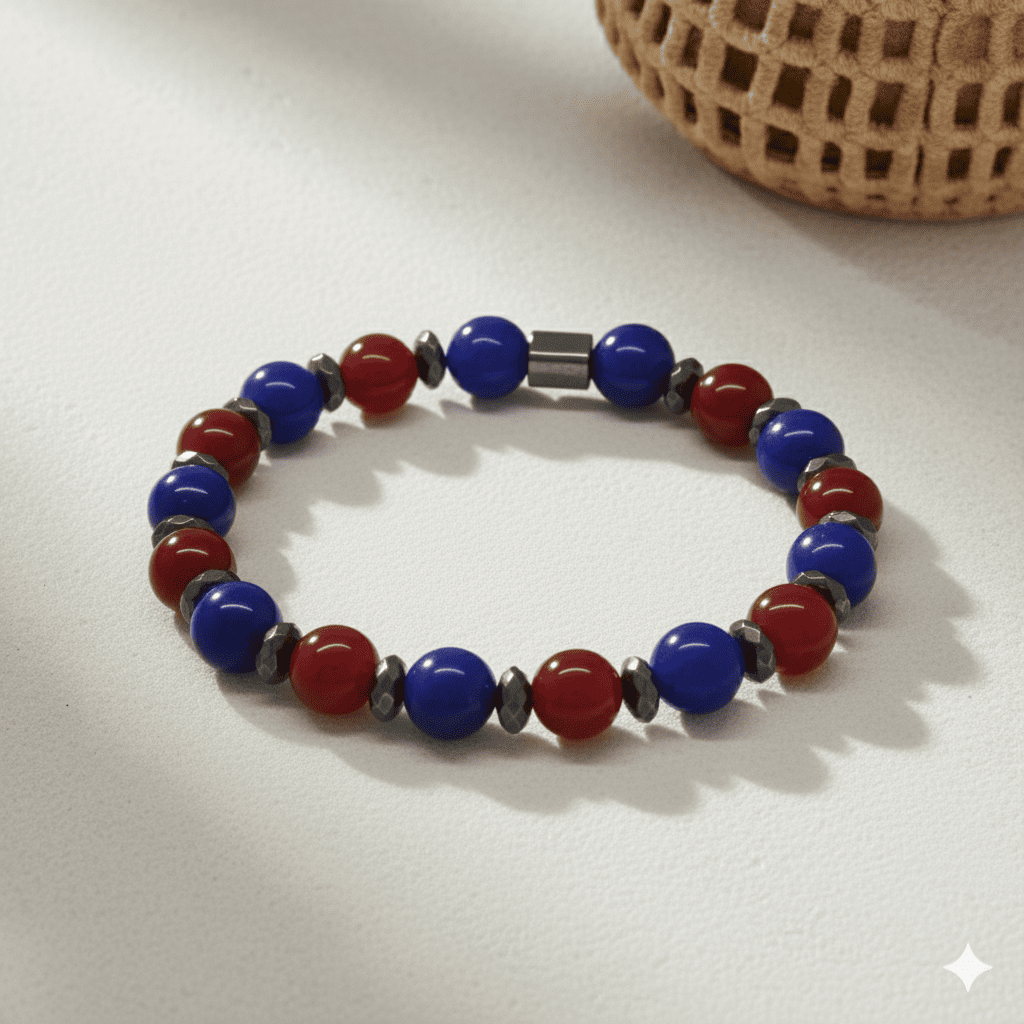 Küre Kesim Bordo Mavi Jade Doğaltaş Erkek Taraftar Bileklik - M2