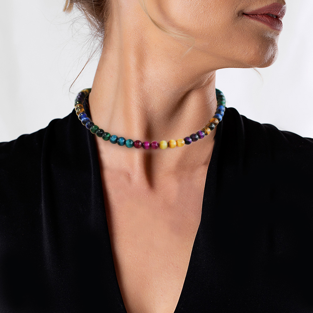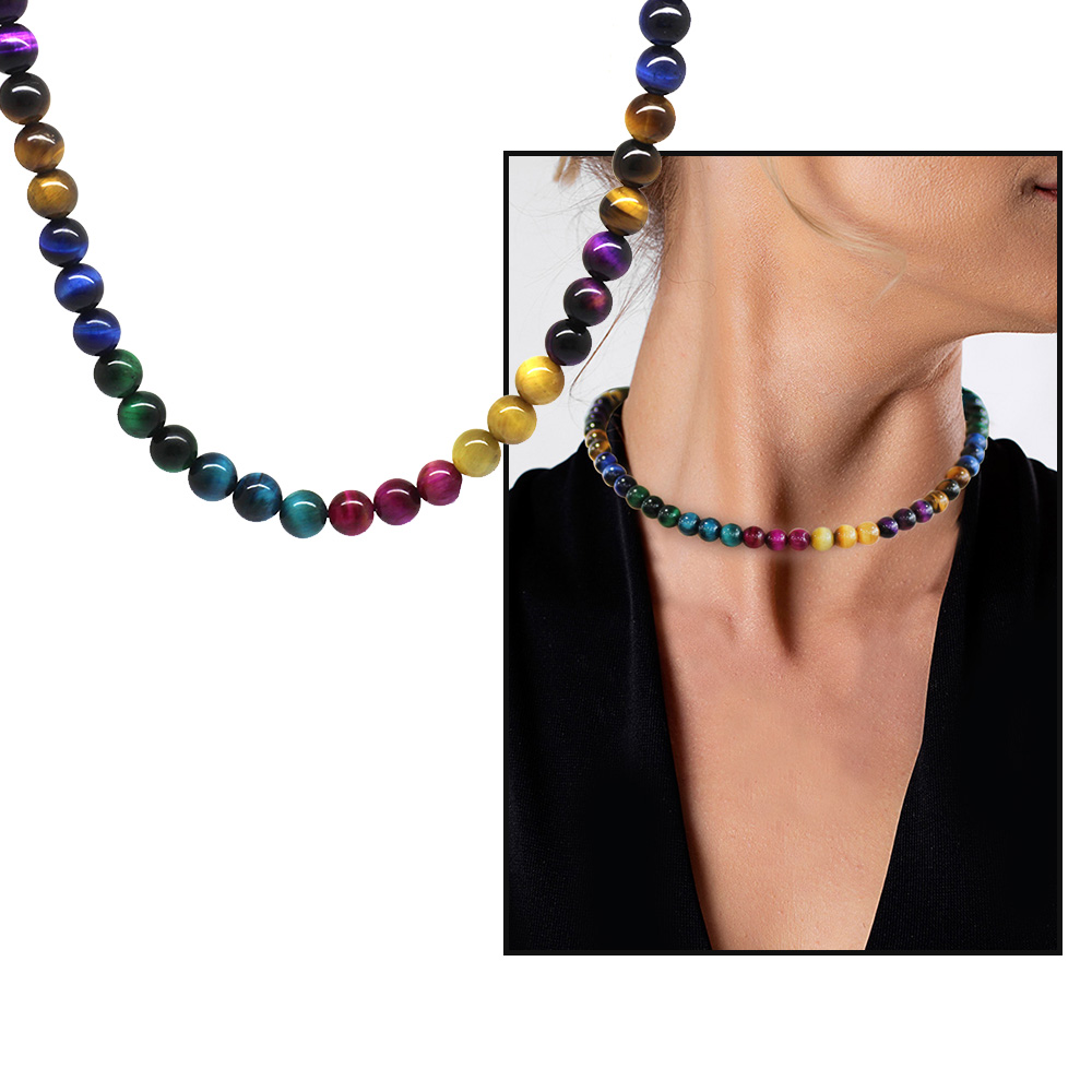 Küre Kesim Çakra Kaplan Gözü Doğaltaş Kombinli Kadın Kolye