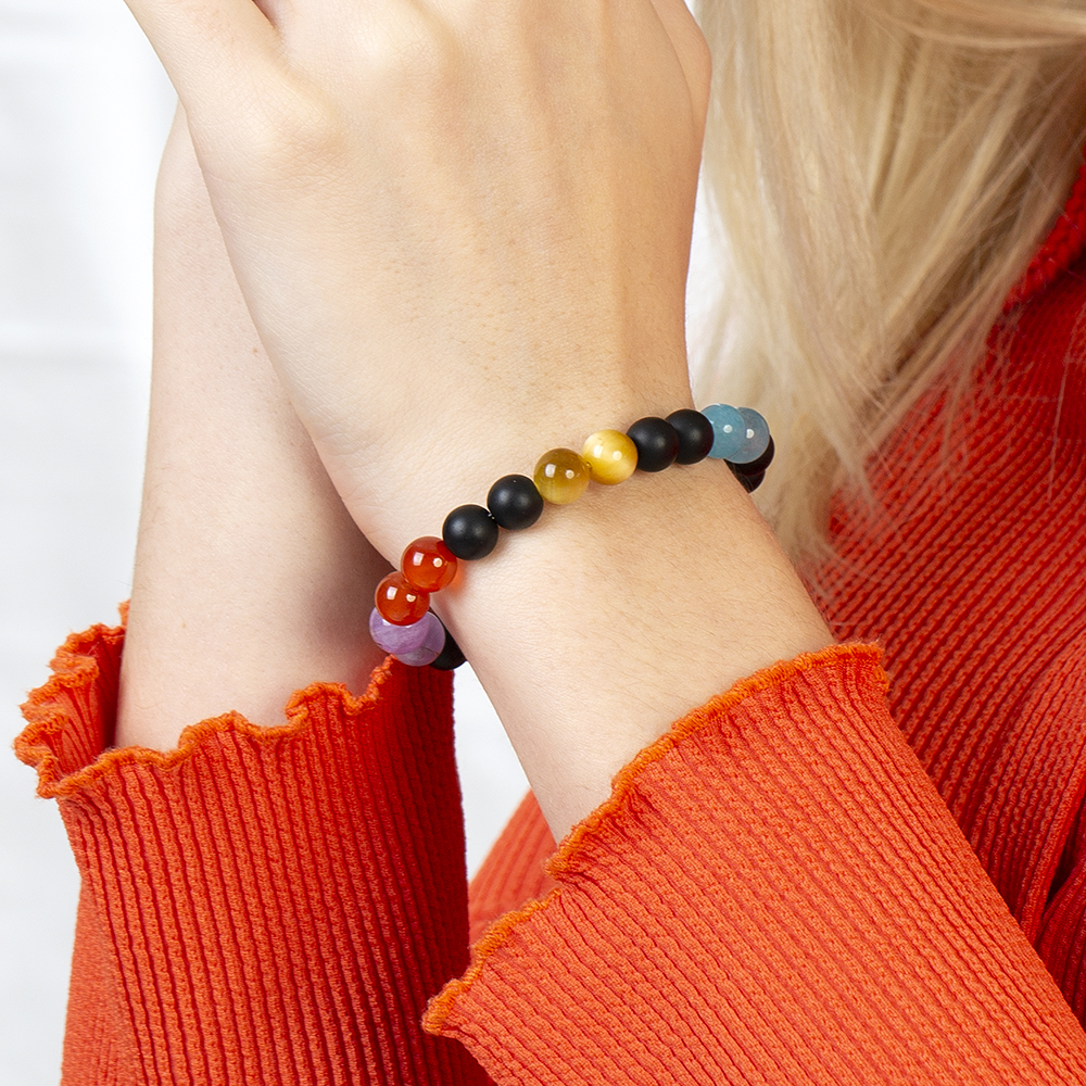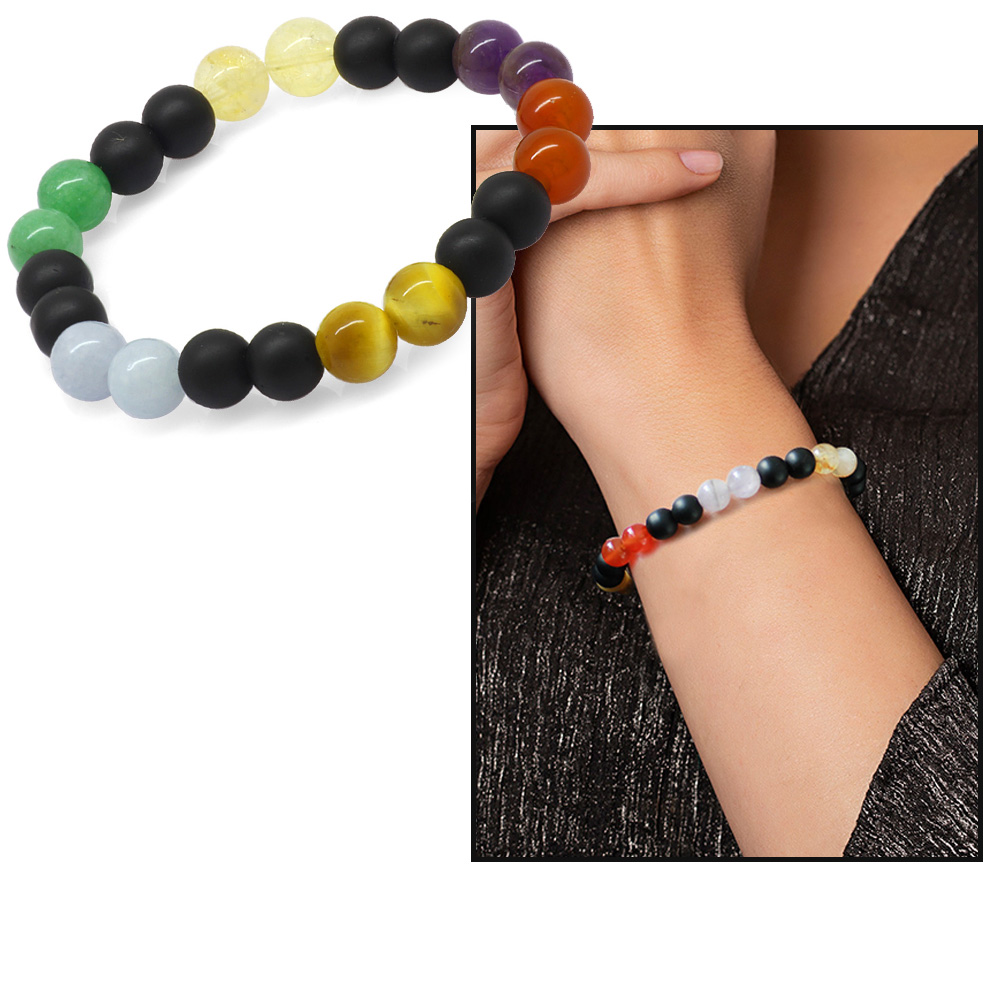 Küre Kesim Çoklu Doğaltaş Kombinli Kadın Başarı Bilekliği