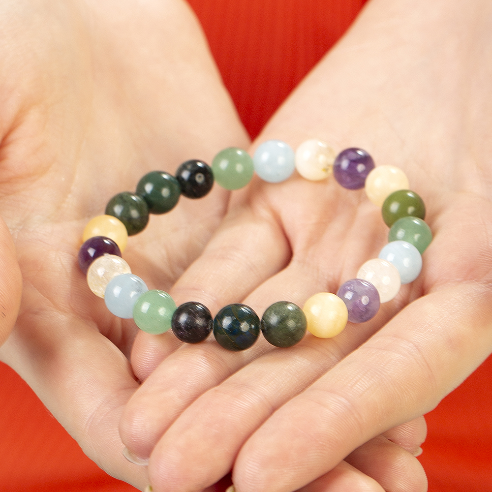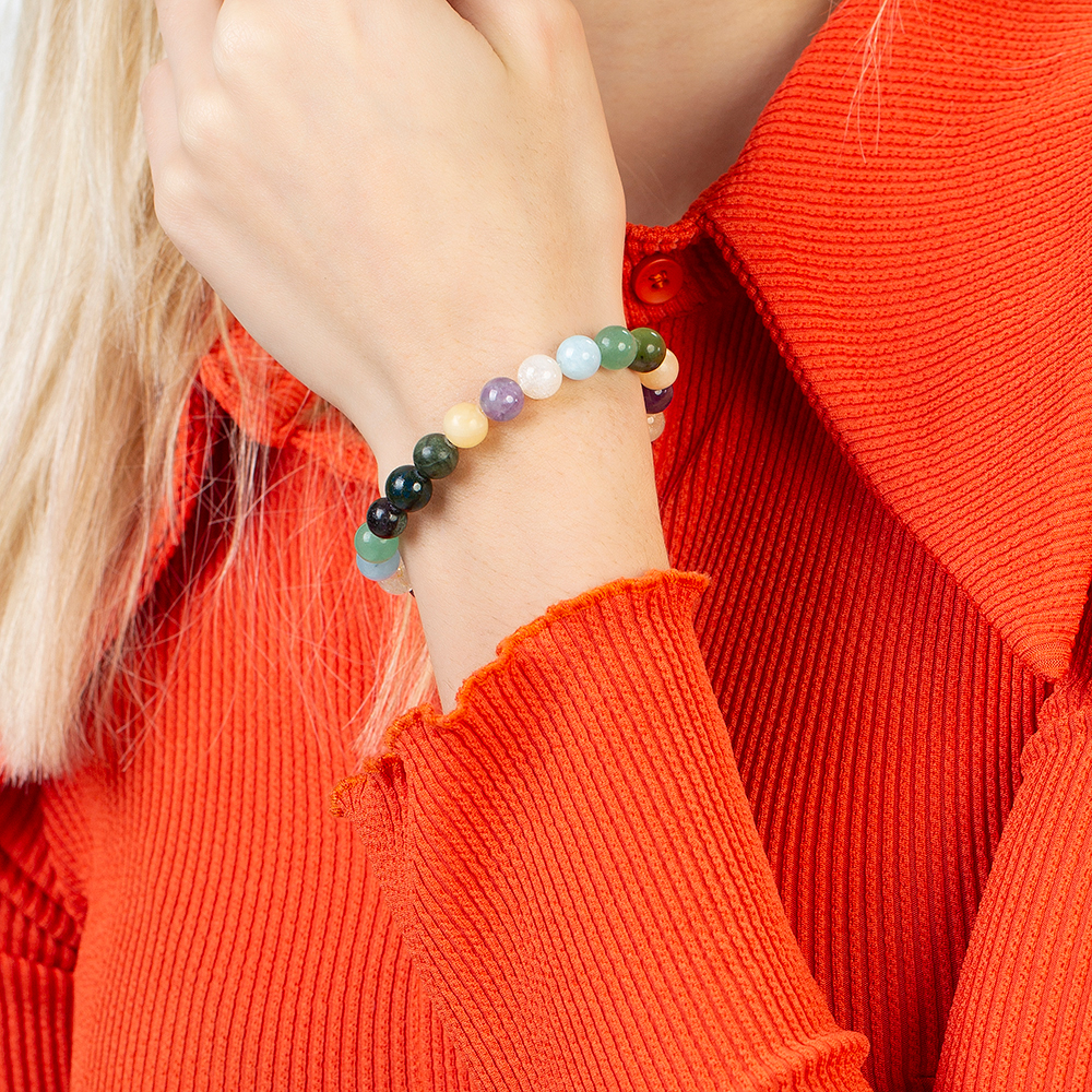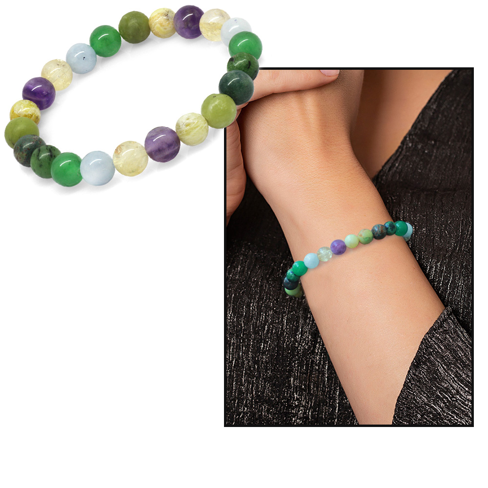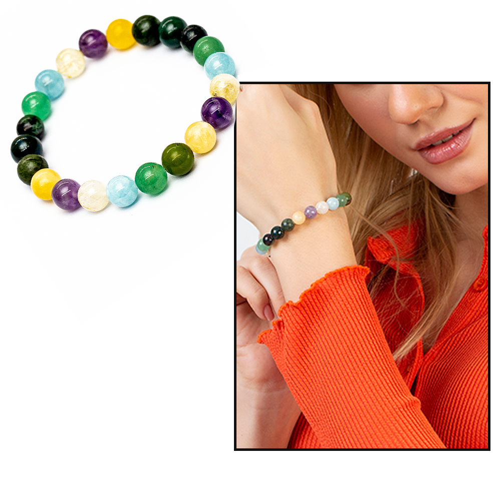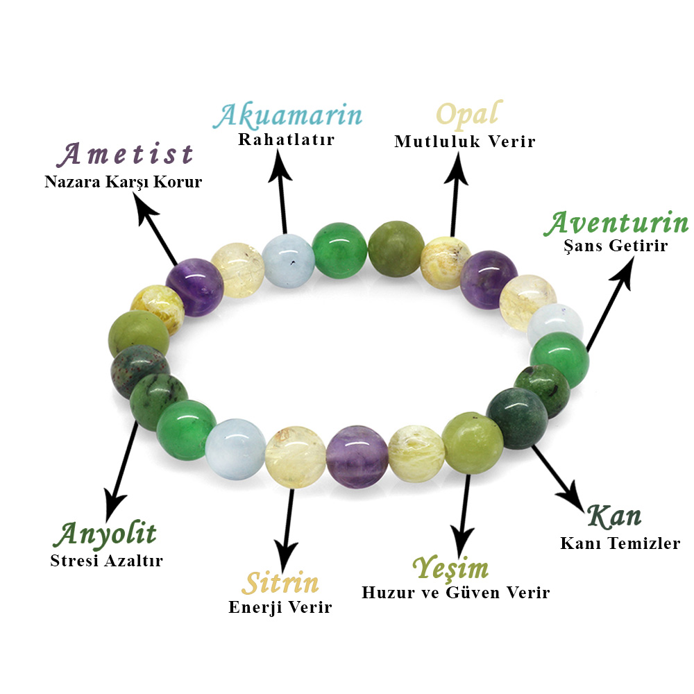Küre Kesim Çoklu Doğaltaş Kombinli Kadın Şifa Bilekliği