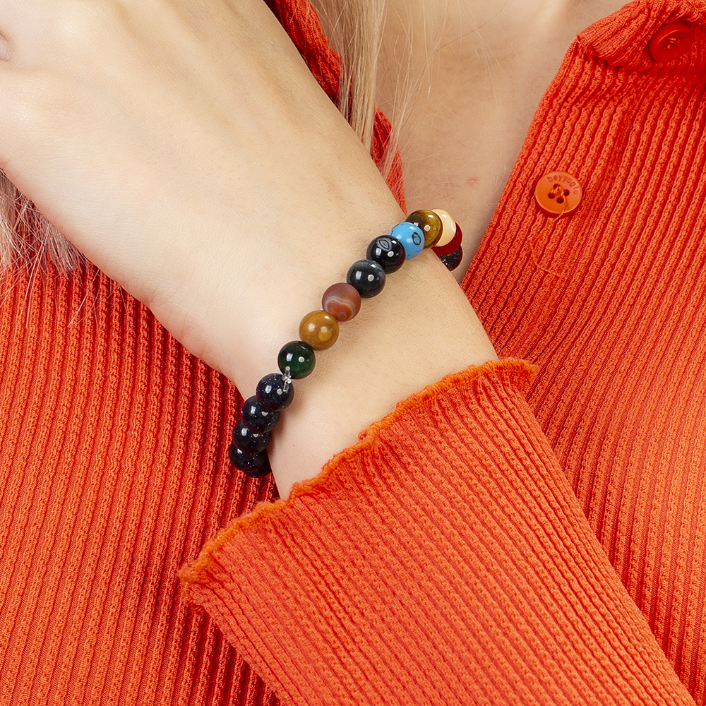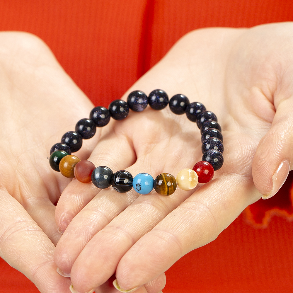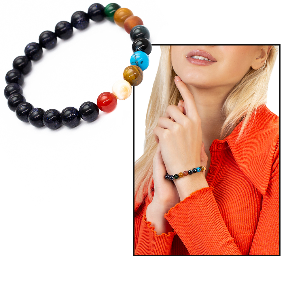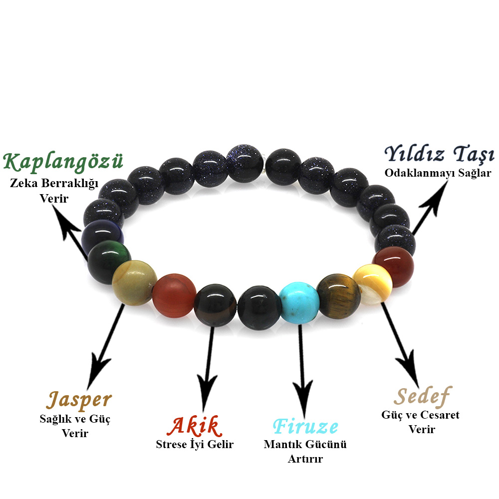 Küre Kesim Çoklu Doğaltaş Yıldız Gezegen Kombinli Kadın Şans Bilekliği