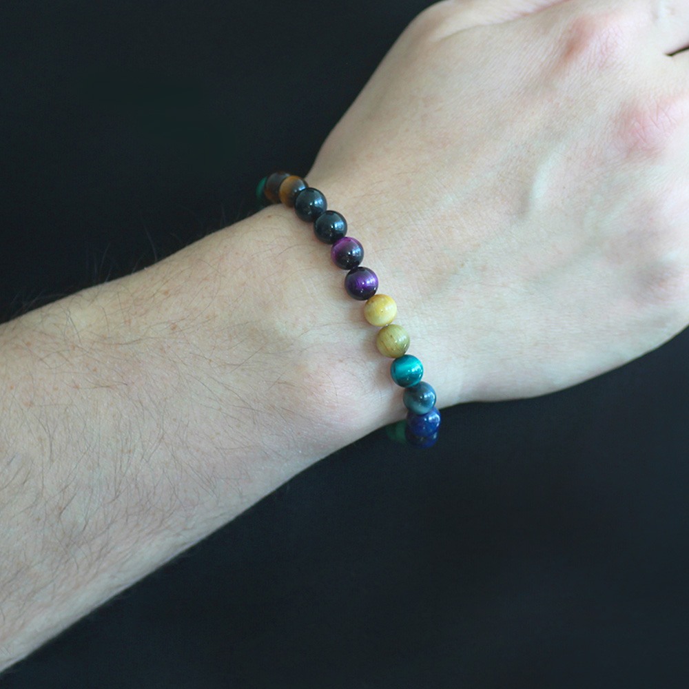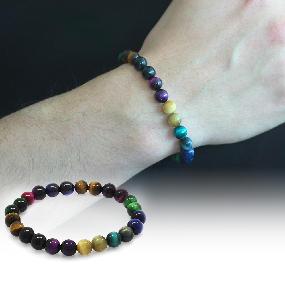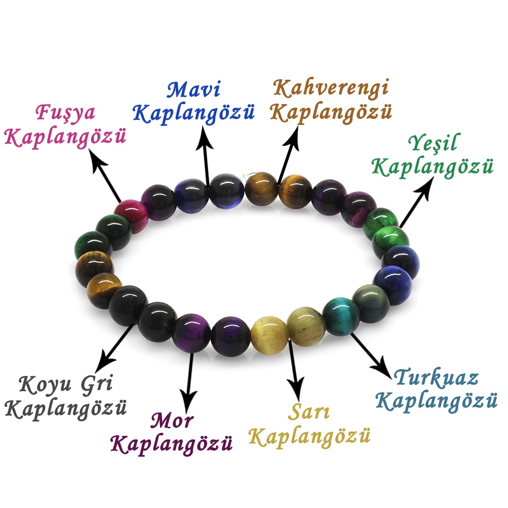 Küre Kesim Çoklu Kaplan Gözü Doğaltaş Kombinli Erkek Enerji Bilekliği