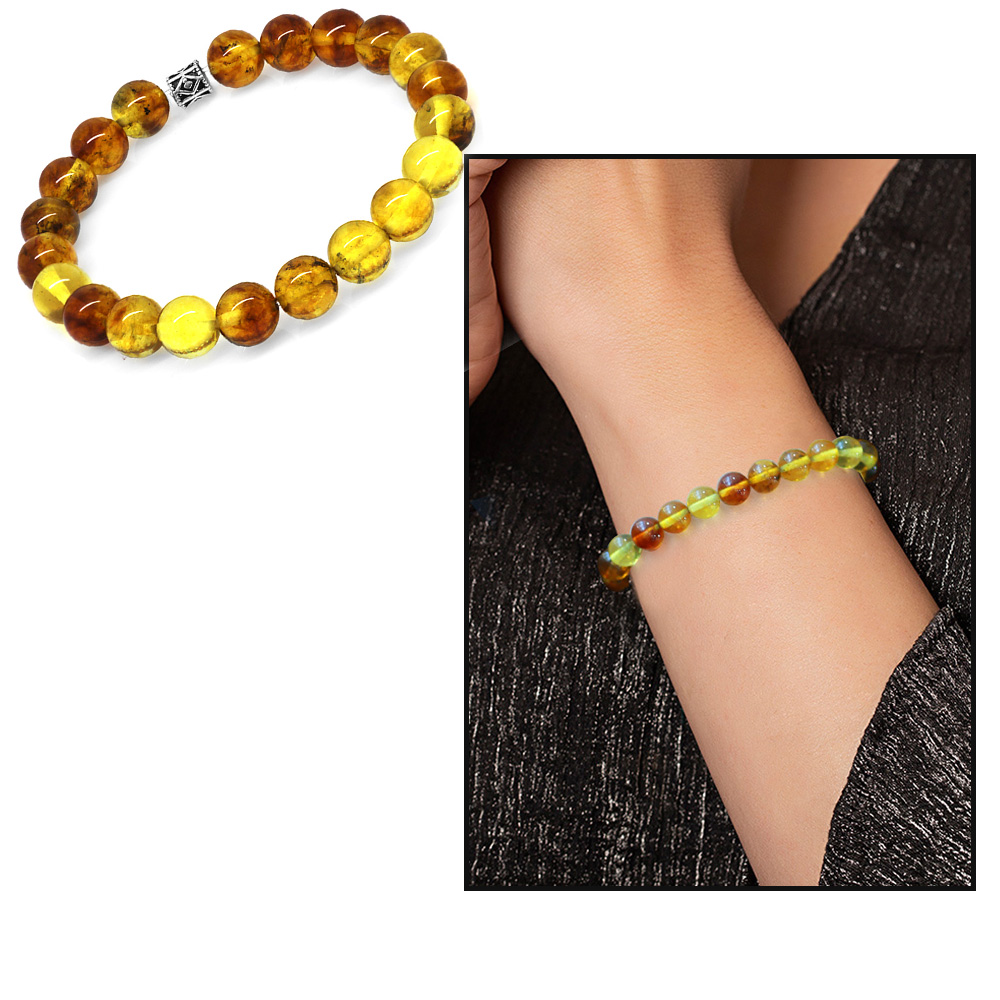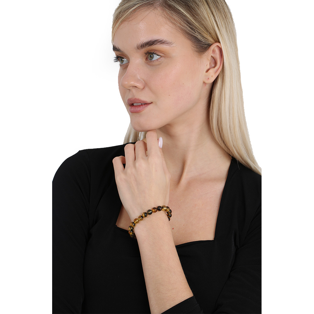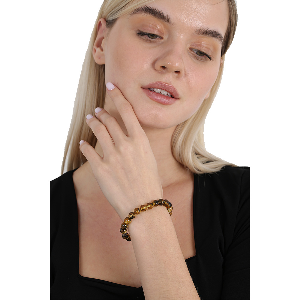 Küre Kesim Fosilli Doğal Sarı Damla Kehribar Kadın Bileklik