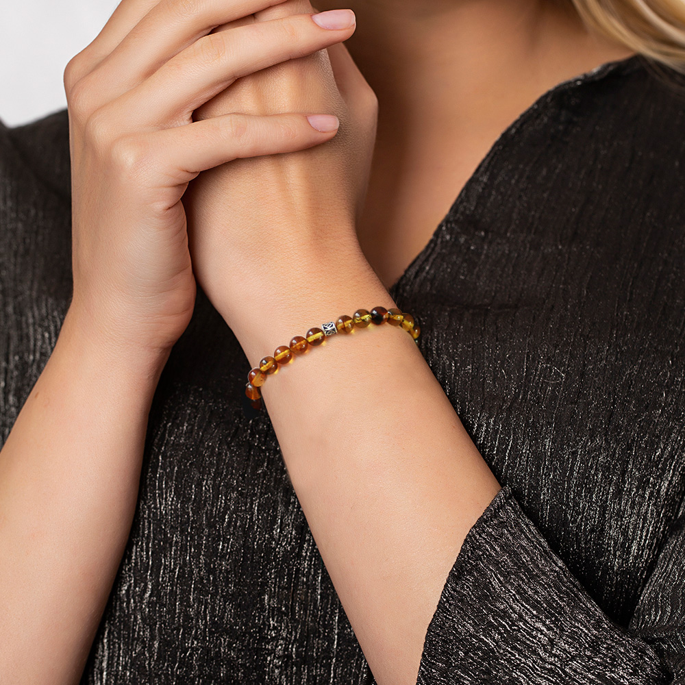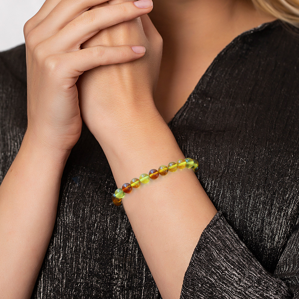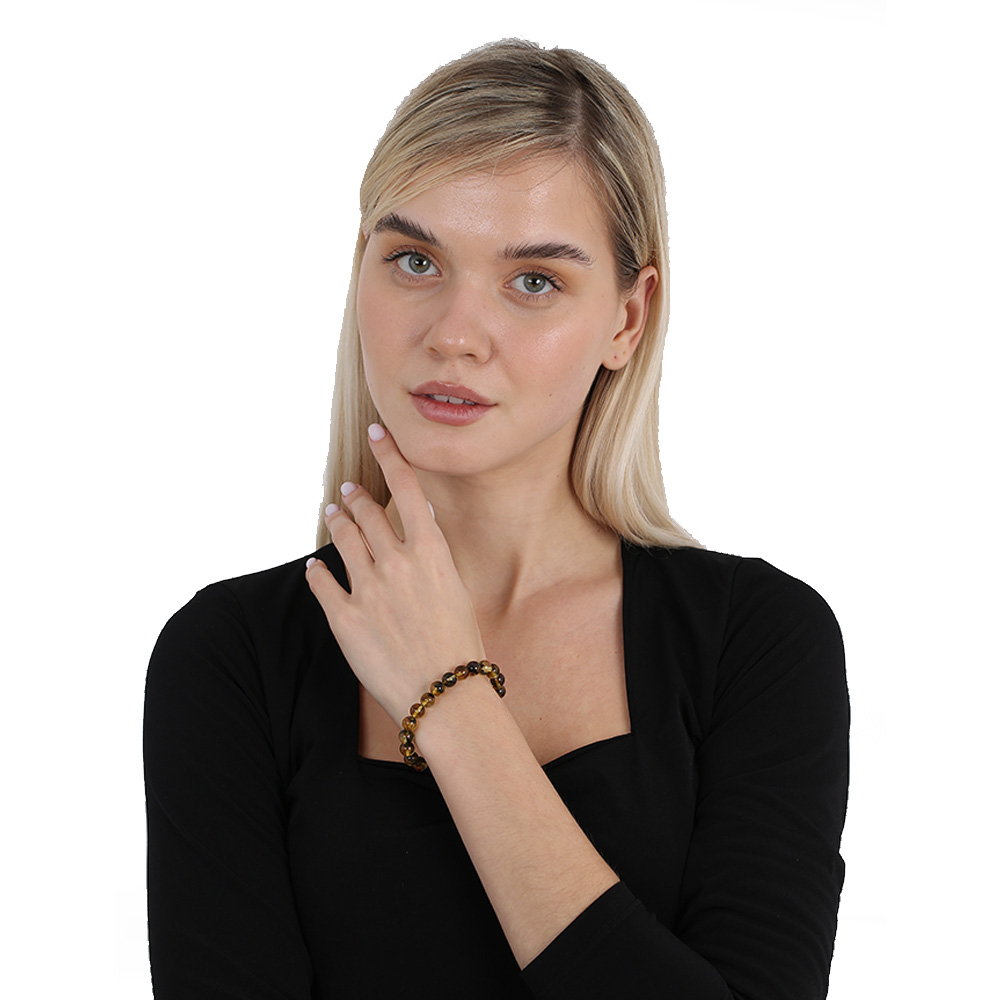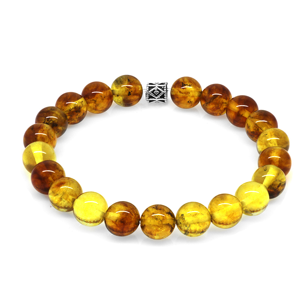 Küre Kesim Fosilli Doğal Sarı Damla Kehribar Kadın Bileklik