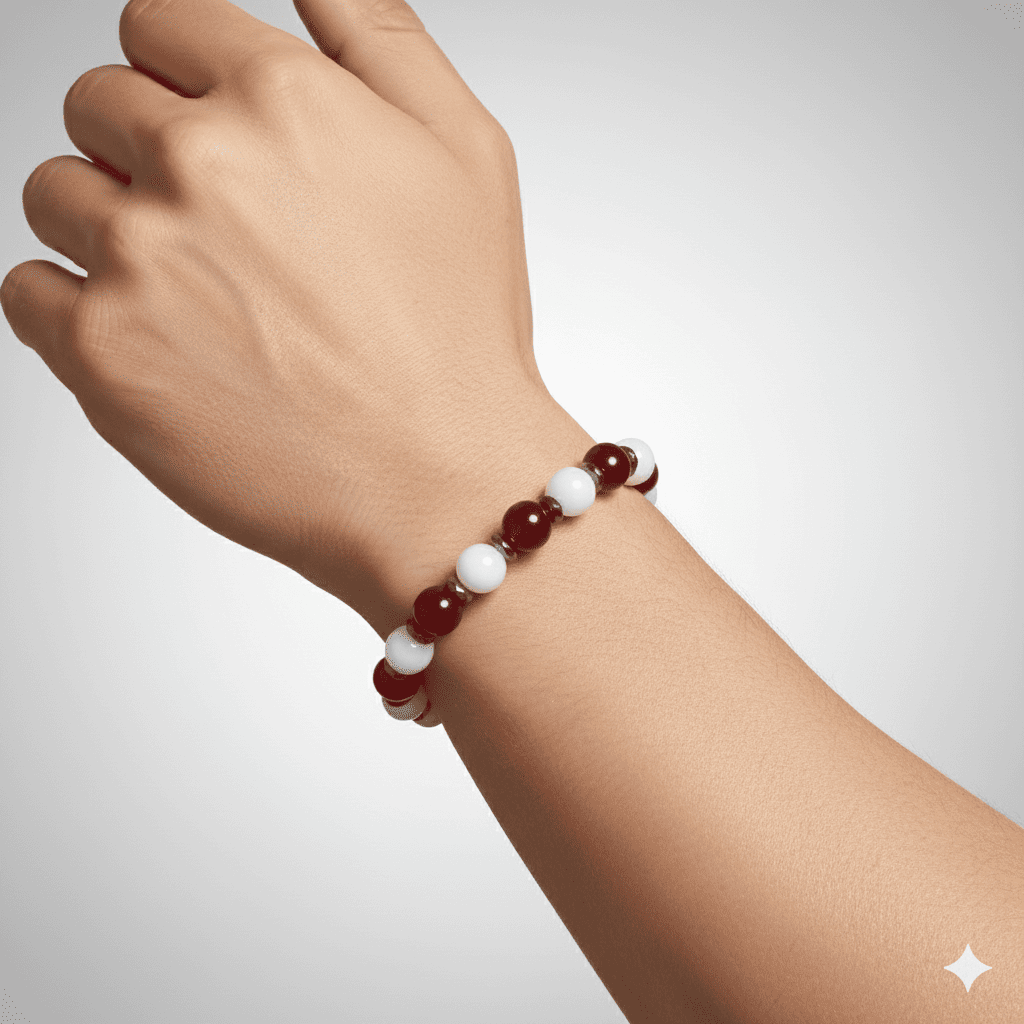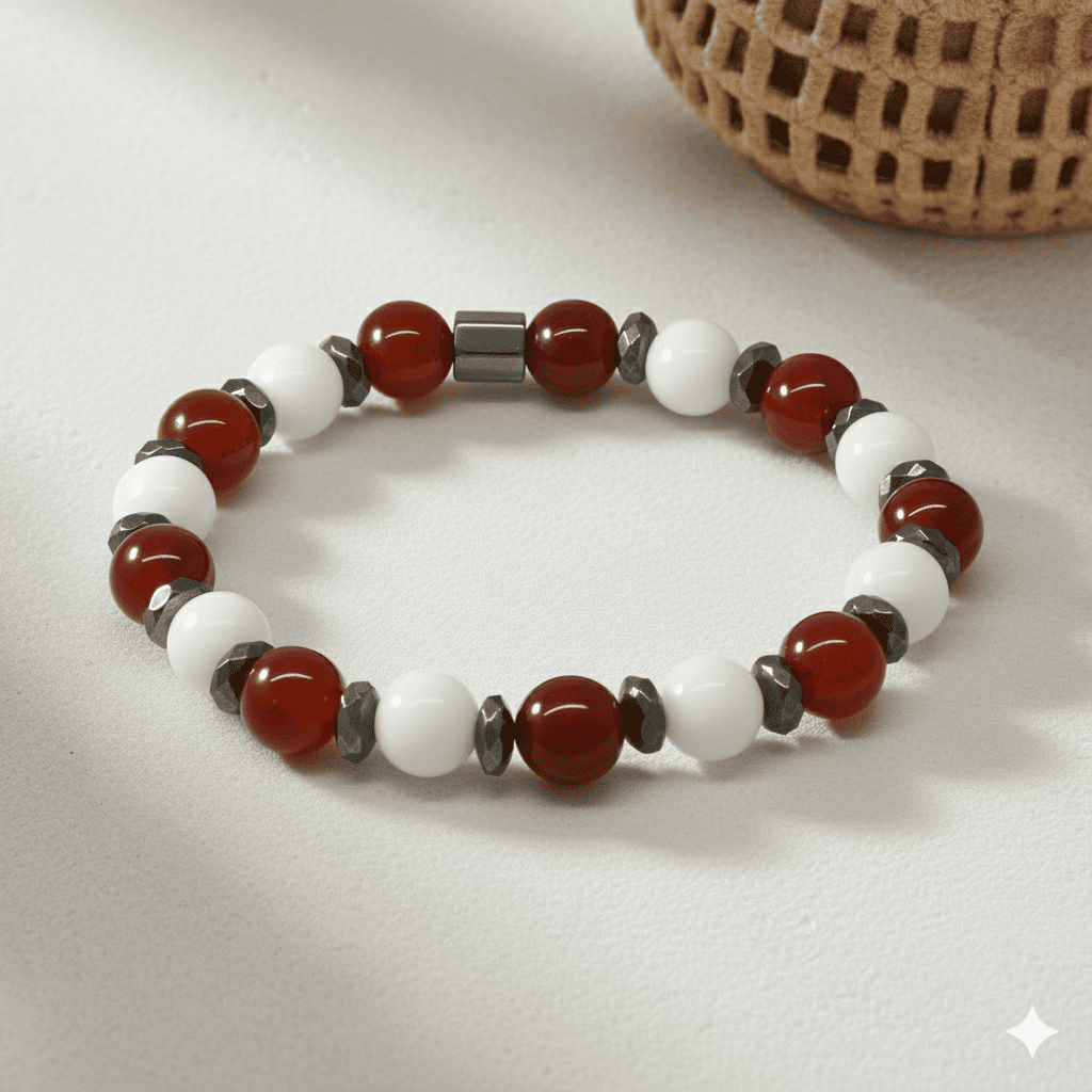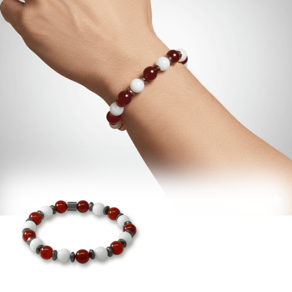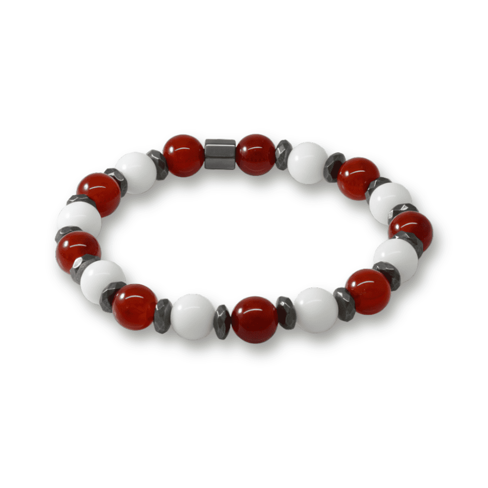 Küre Kesim Kırmızı Beyaz Jade Akik Hematit Doğaltaş Erkek Taraftar Bileklik M2