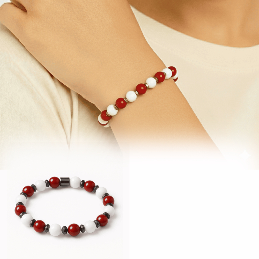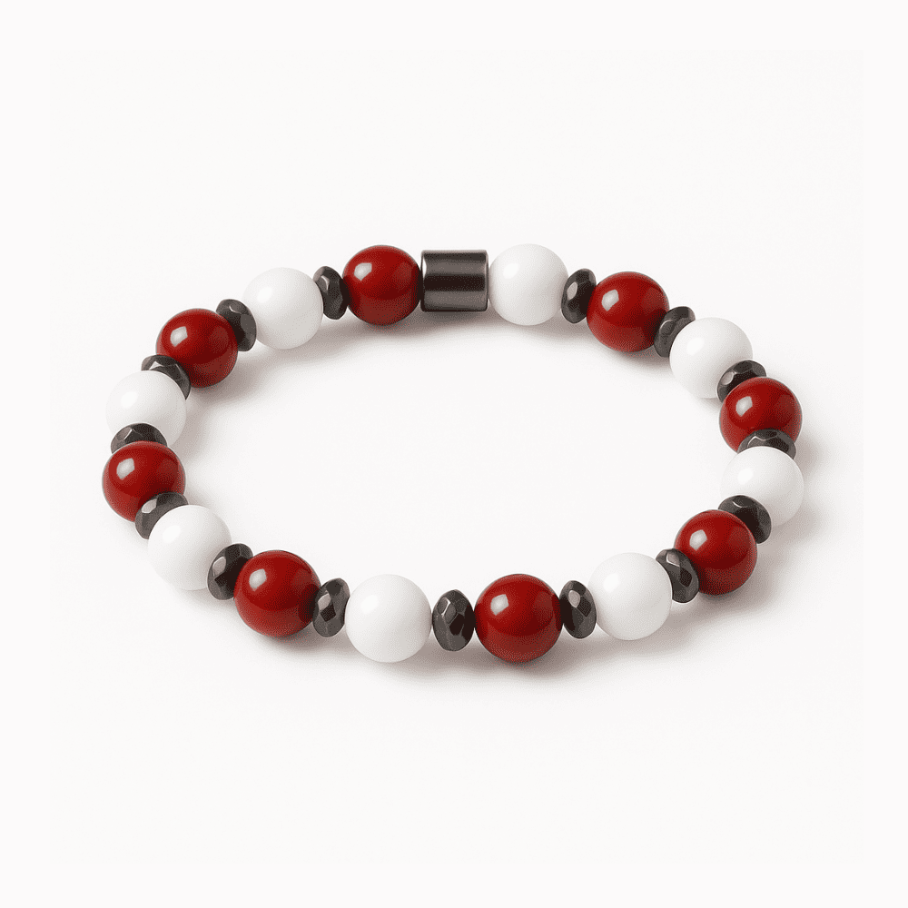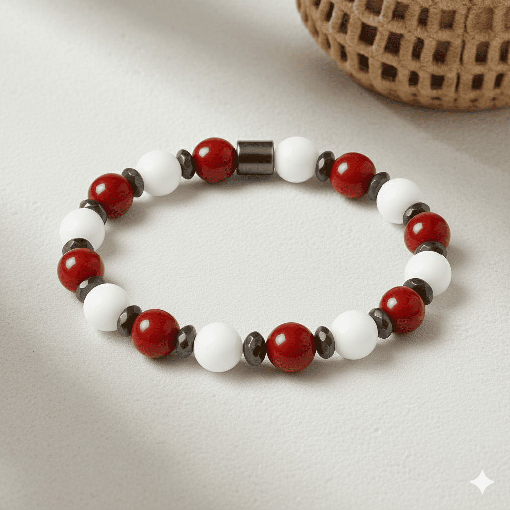 Küre Kesim Kırmızı Beyaz Jade Akik Hematit Doğaltaş Kadın Taraftar Bileklik M2