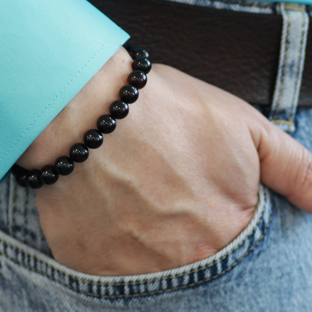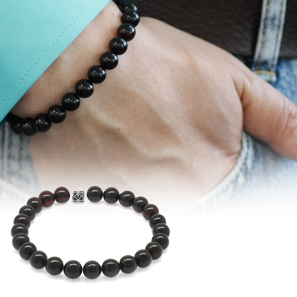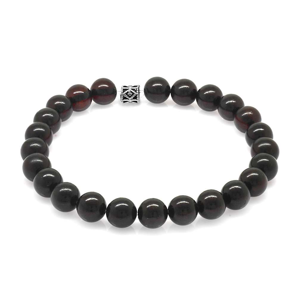 Küre Kesim Koyu Kırmızı Doğal Damla Kehribar Erkek Bileklik - 1