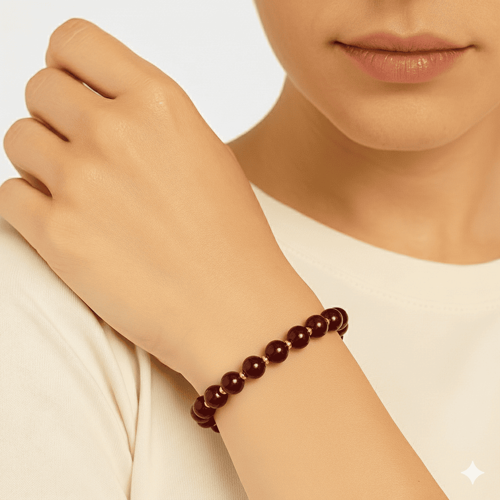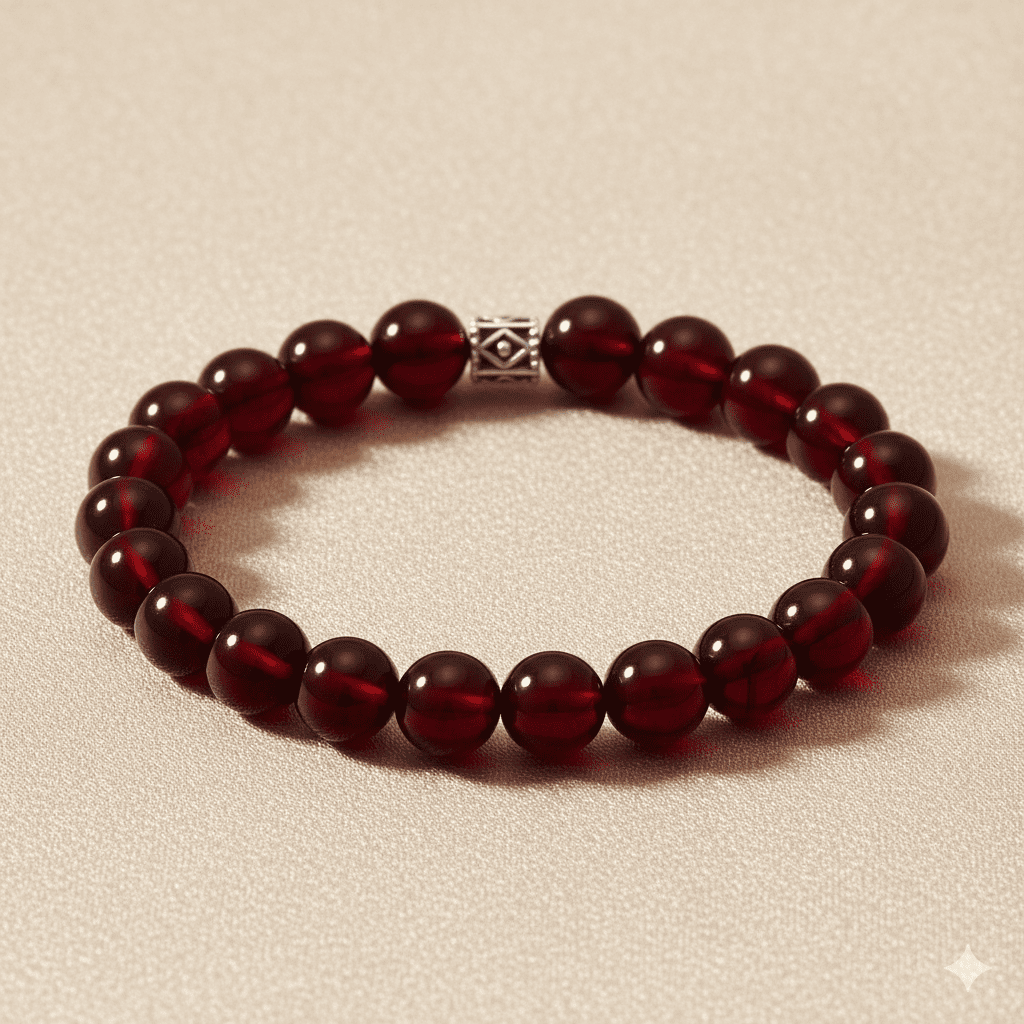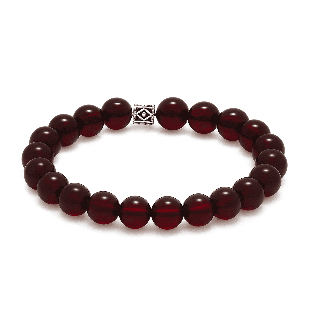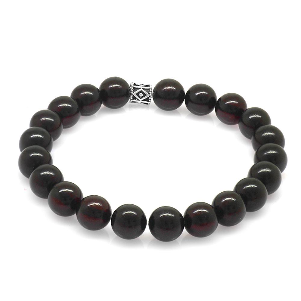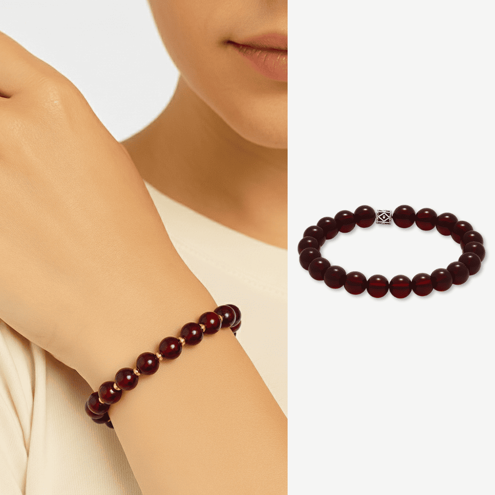 Küre Kesim Koyu Kırmızı Doğal Damla Kehribar Kadın Bileklik