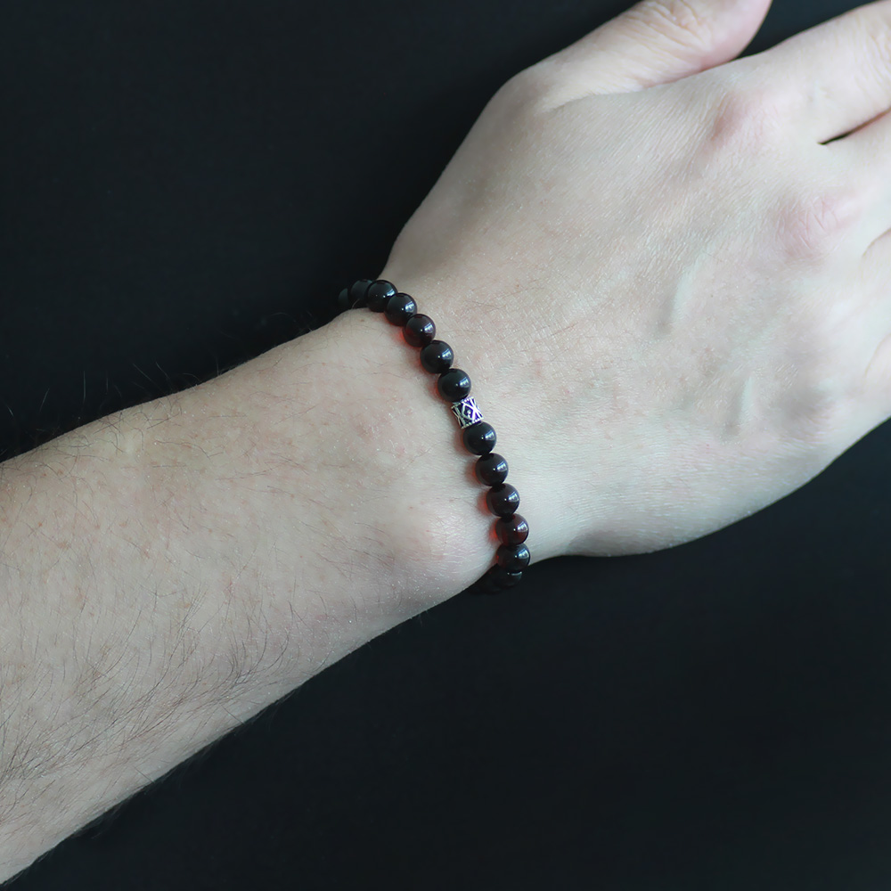 Küre Kesim Kırmızı Doğal Damla Kehribar Erkek Bileklik - 1