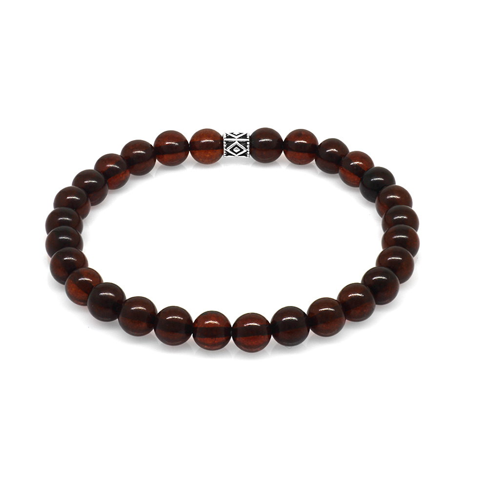 Küre Kesim Kırmızı Doğal Damla Kehribar Erkek Bileklik