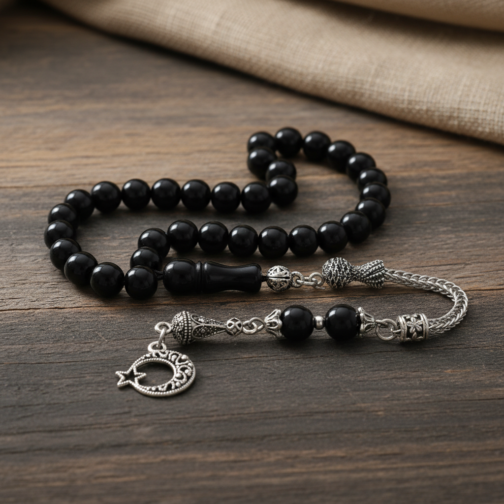 Kararmaz Metal Püsküllü Küre Kesim Rus Oltu Tesbih