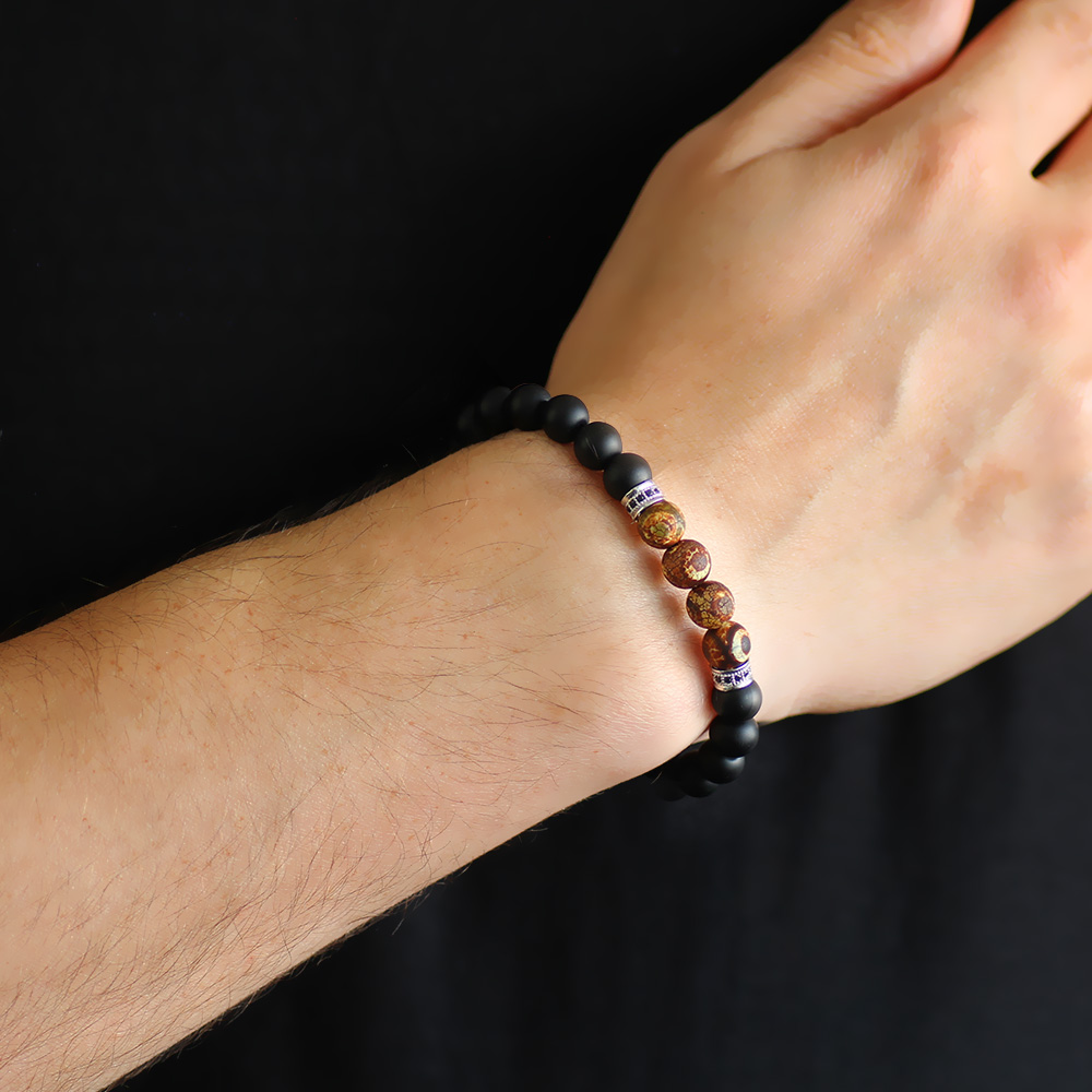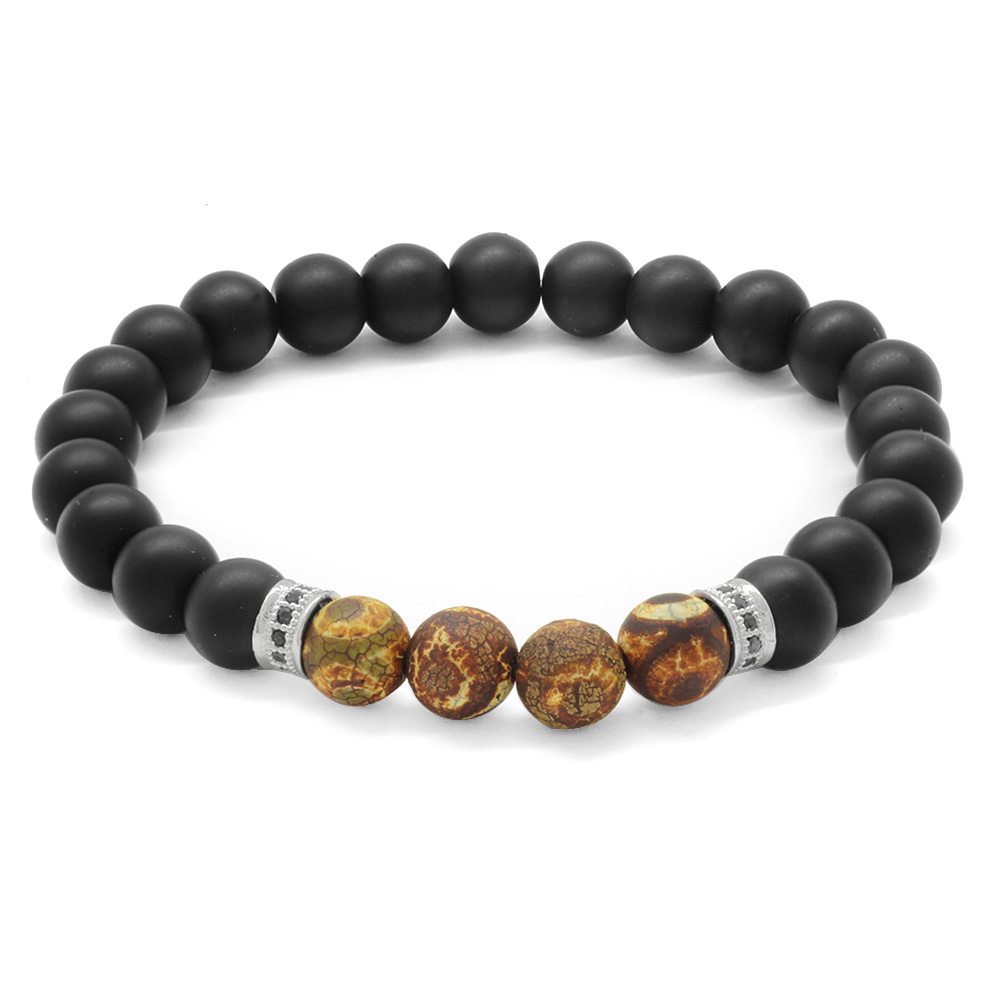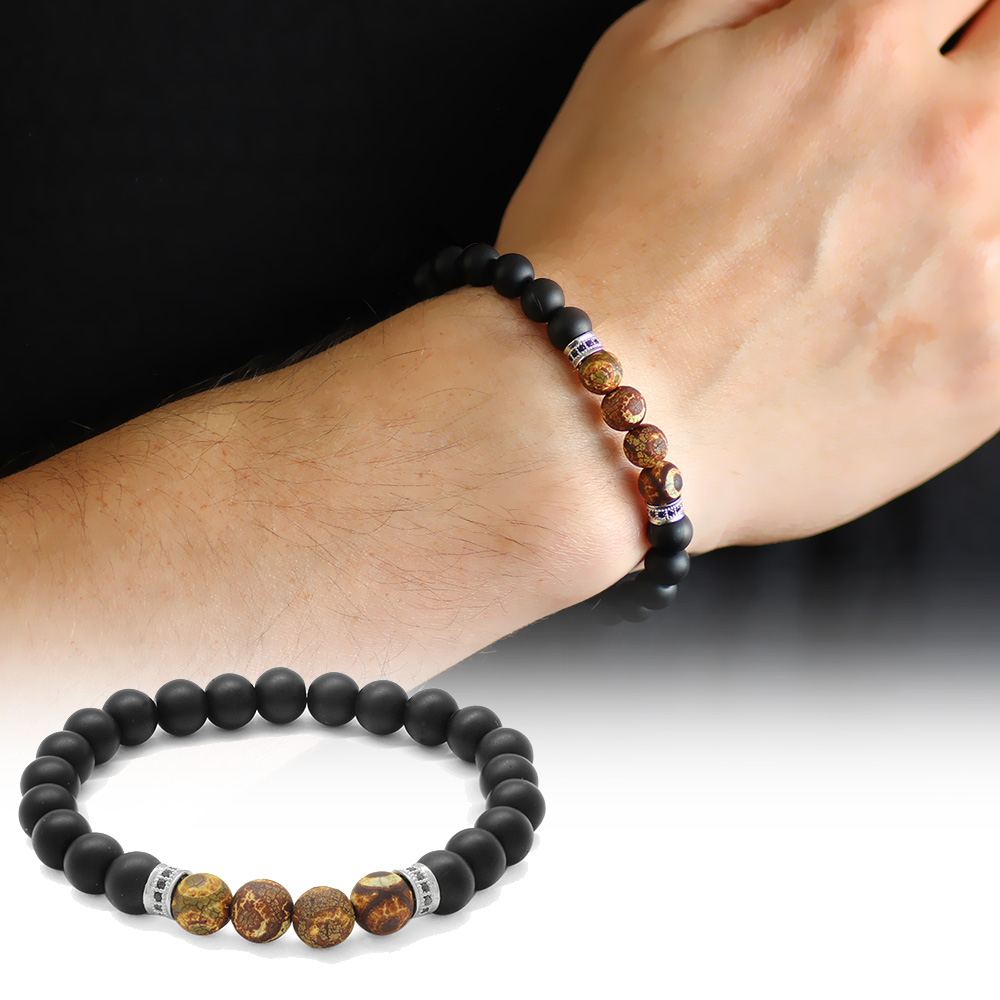 Küre Kesim Oniks Tibet Akik Kombinli Doğaltaş Erkek Bileklik