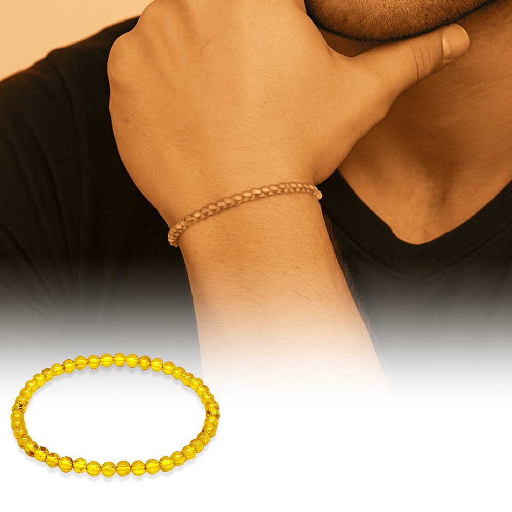 Küre Kesim Sarı Doğal Damla Kehribar Erkek Bileklik