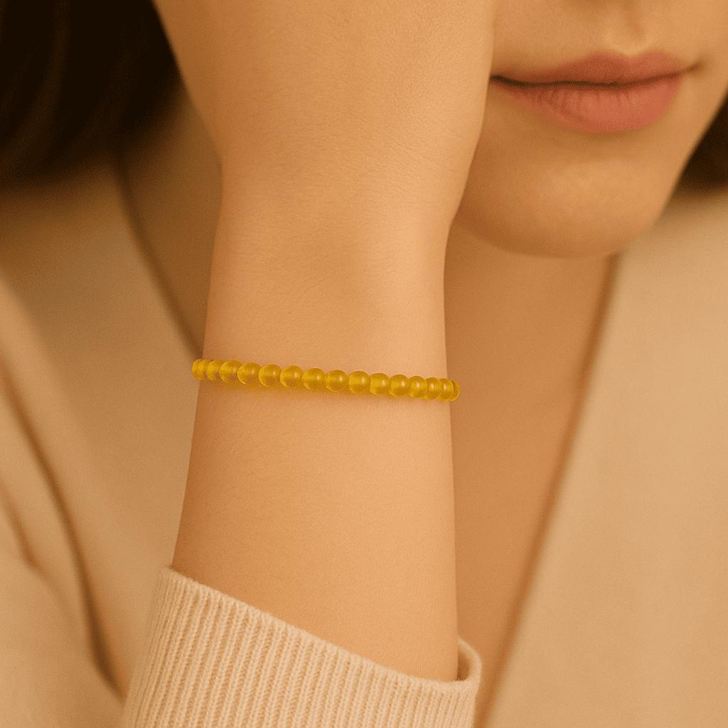 Küre Kesim Sarı Doğal Damla Kehribar Kadın Bileklik - 1