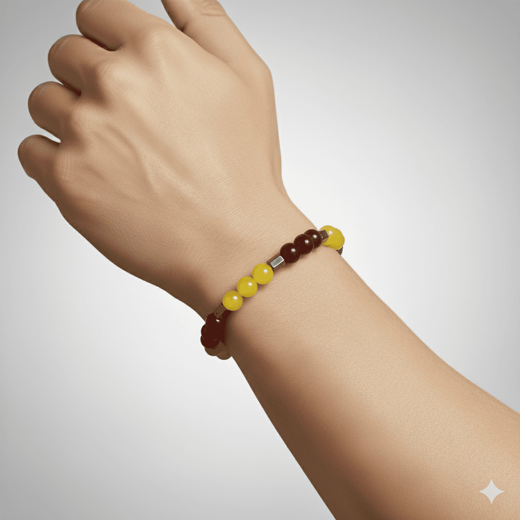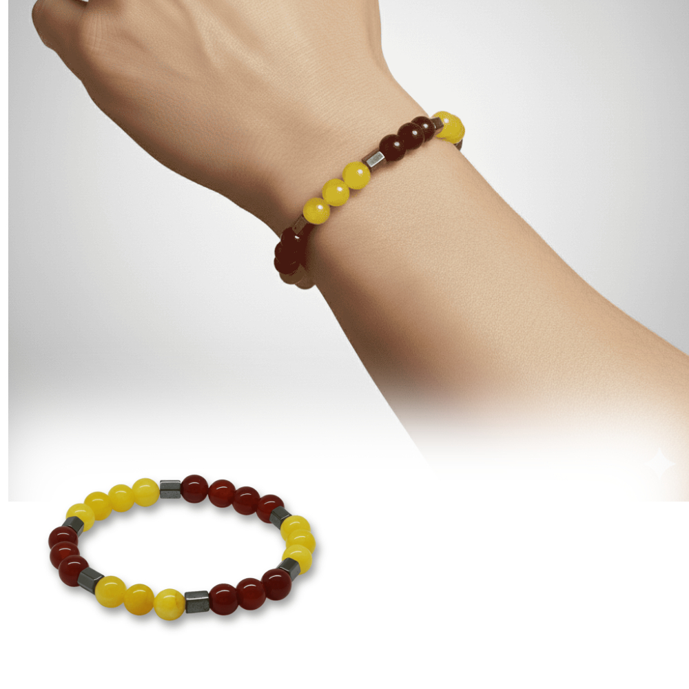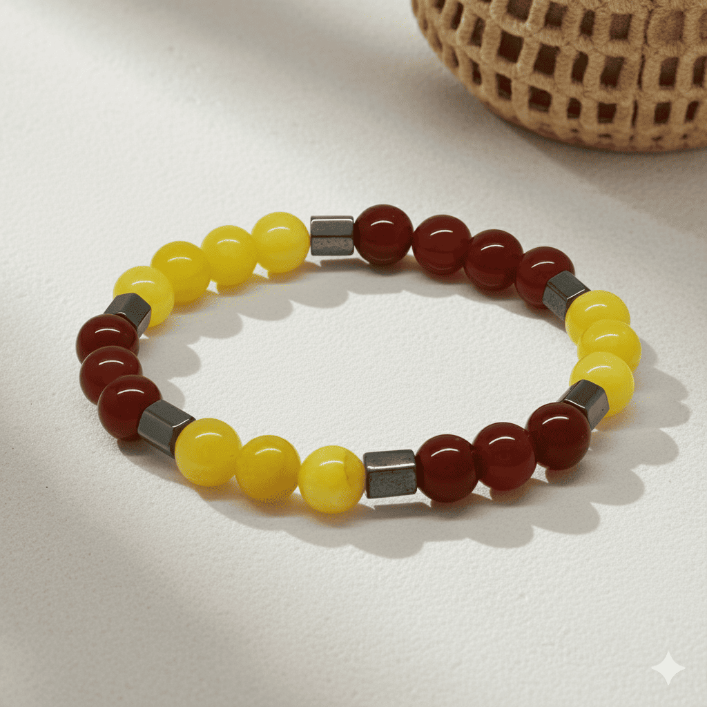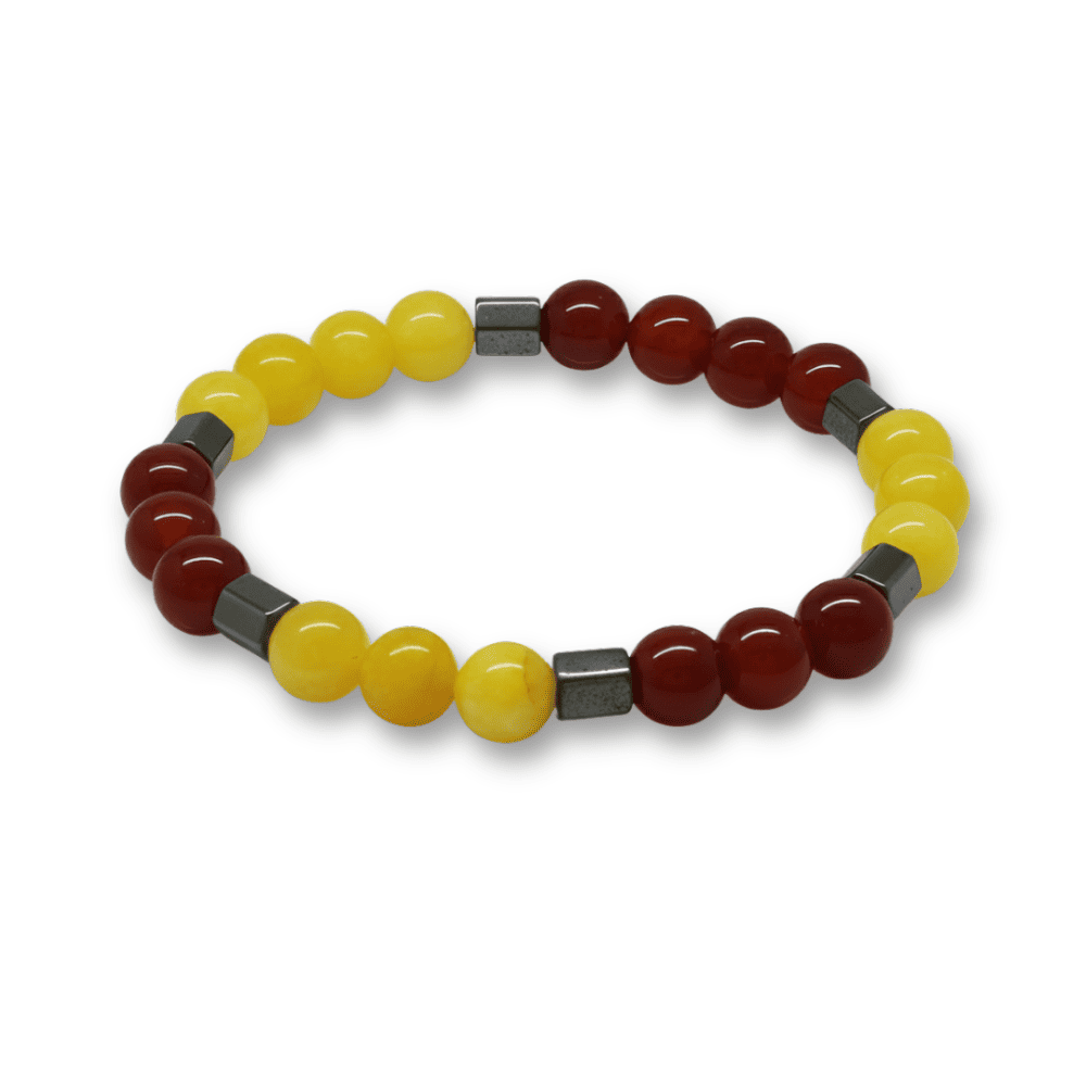 Küre Kesim Sarı Kırmızı Jade Akik Hematit Doğaltaş Erkek Taraftar Bileklik