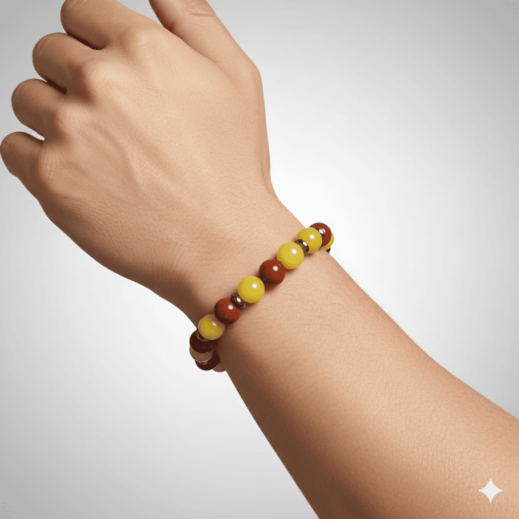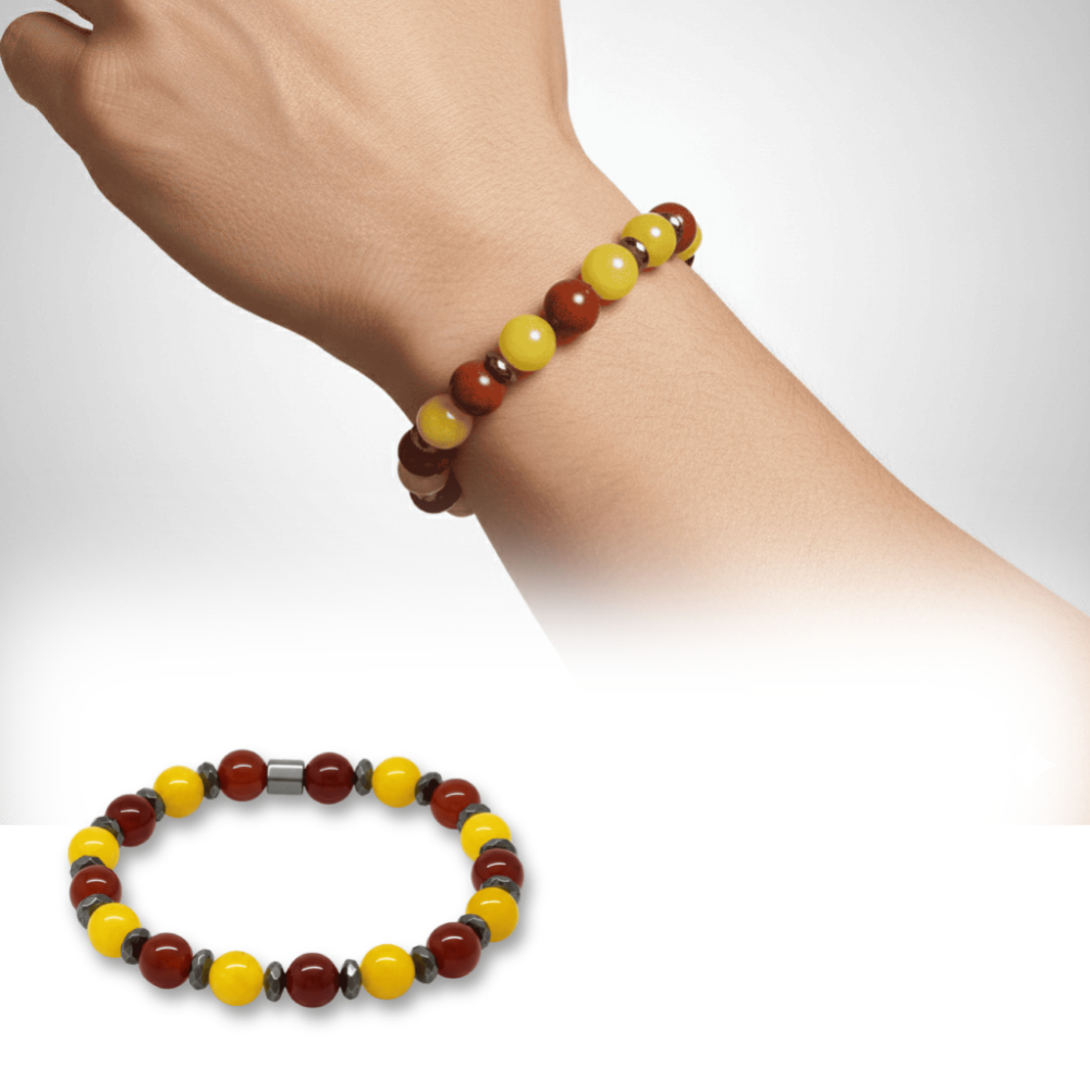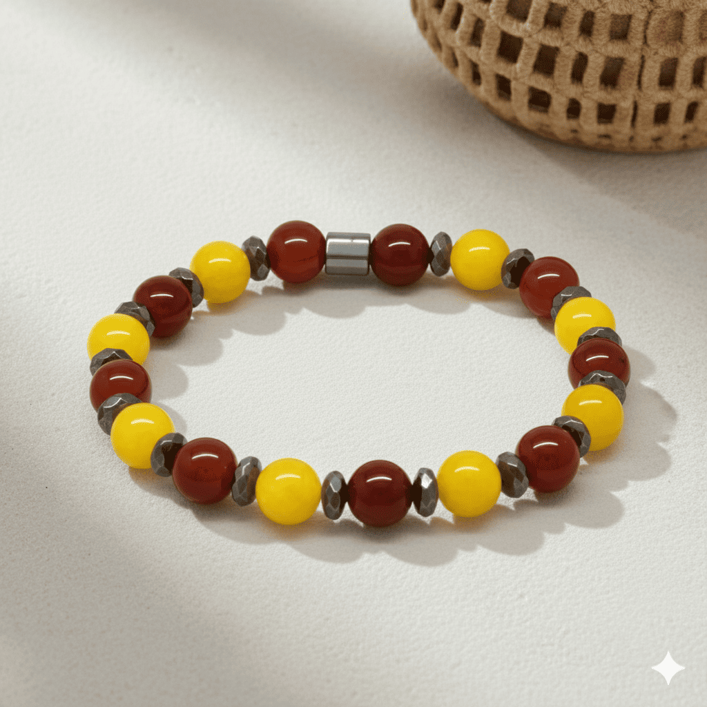 Küre Kesim Sarı Kırmızı Jade Akik Hematit Doğaltaş Erkek Taraftar Bileklik M2