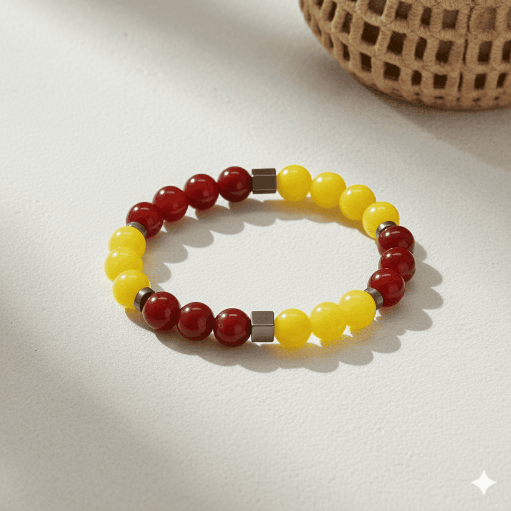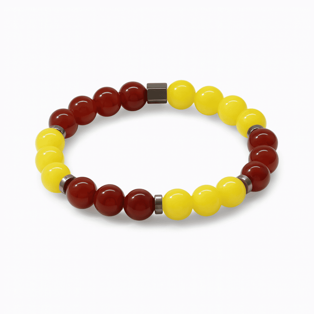 Küre Kesim Sarı Kırmızı Jade Akik Hematit Doğaltaş Kadın Taraftar Bileklik