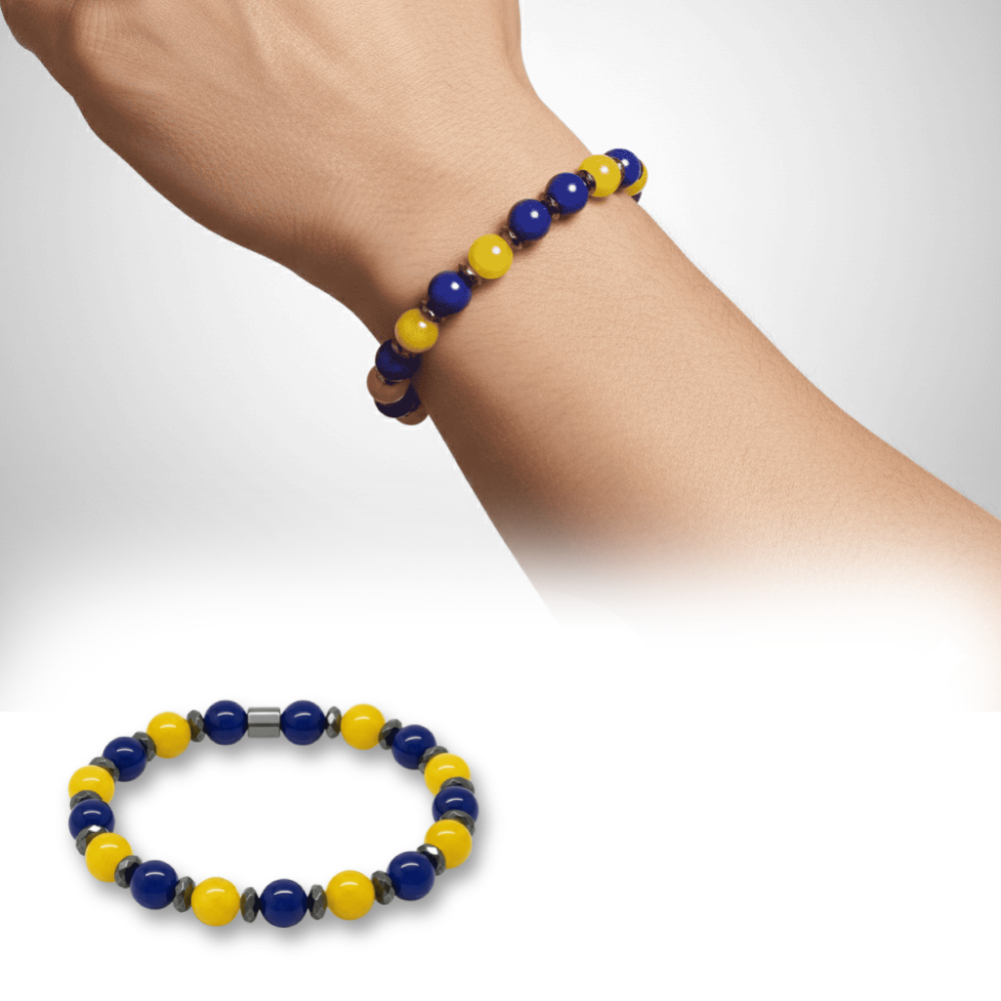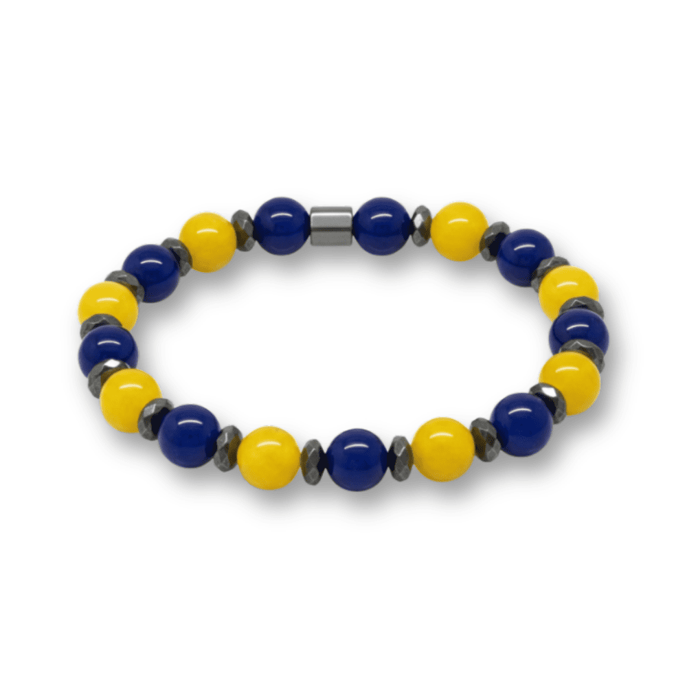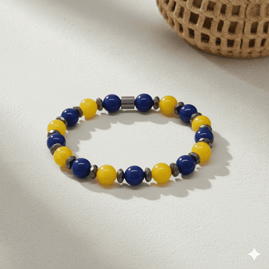 Küre Kesim Sarı Lacivert Jade Hematit Doğaltaş Erkek Taraftar Bileklik - M2