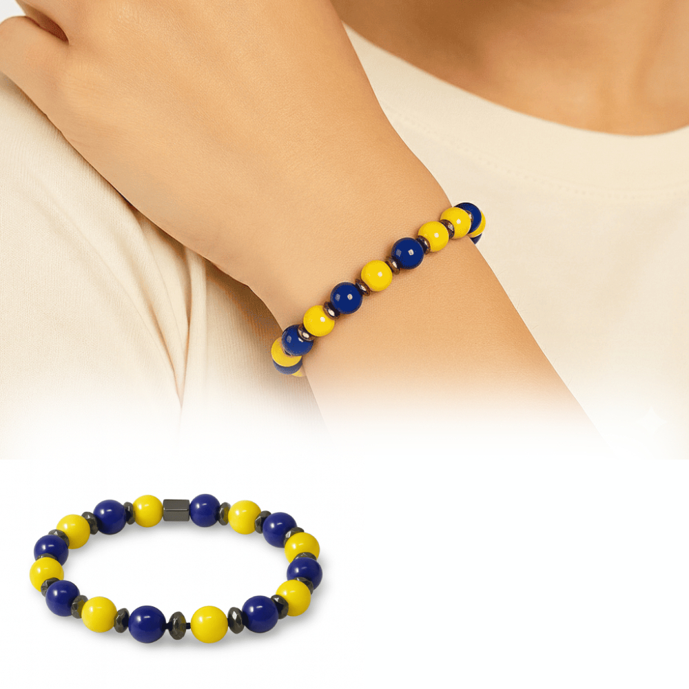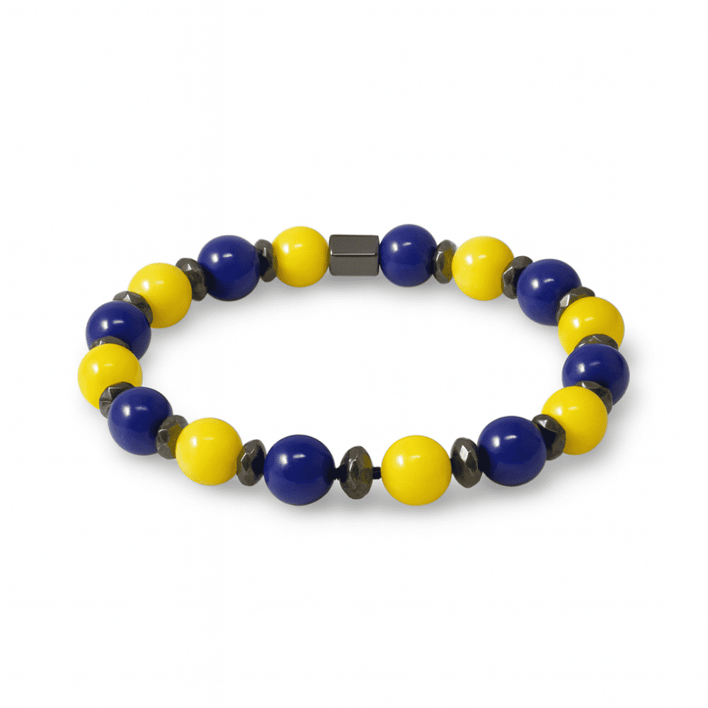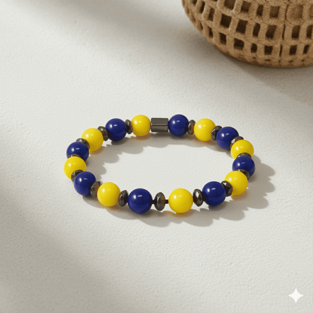 Küre Kesim Sarı Lacivert Jade Hematit Doğaltaş Kadın Taraftar Bileklik M2