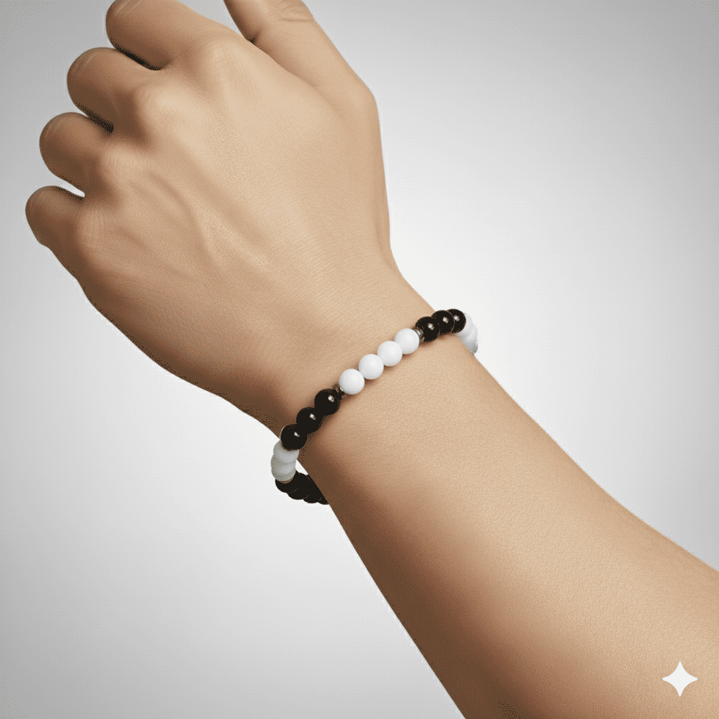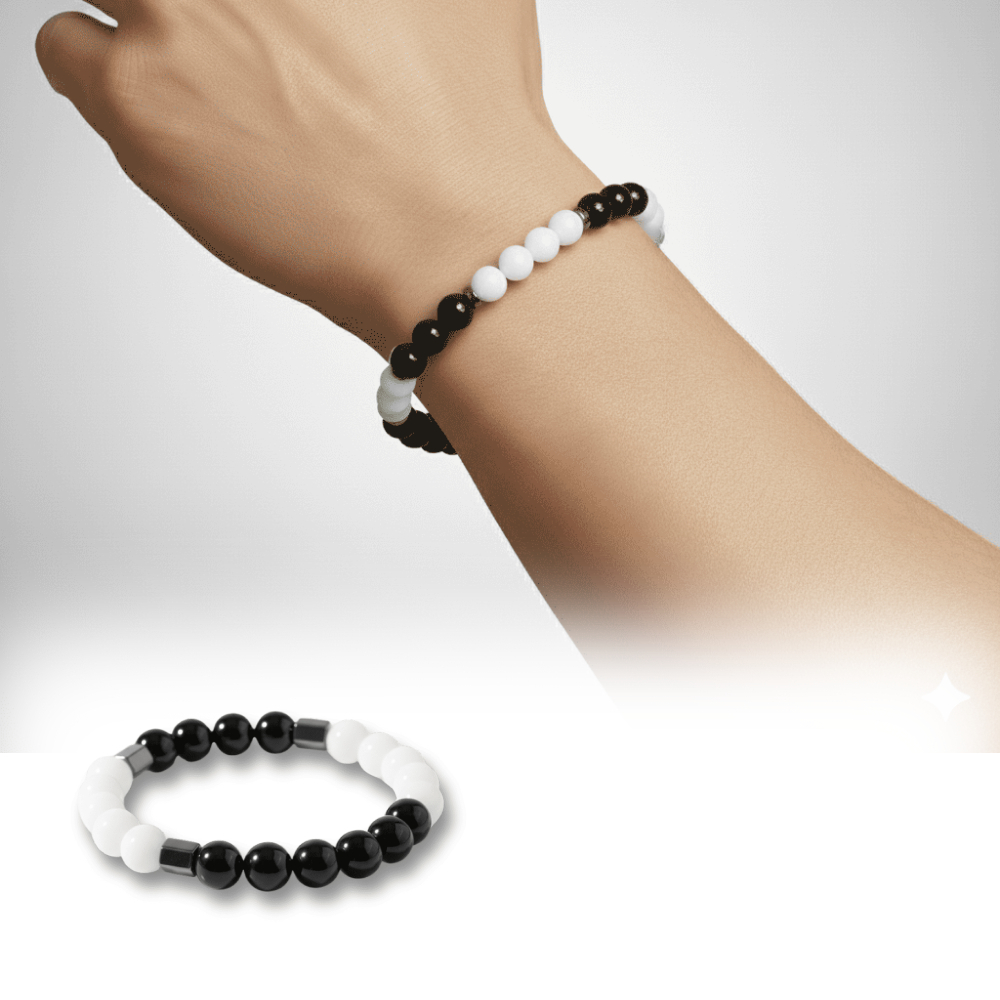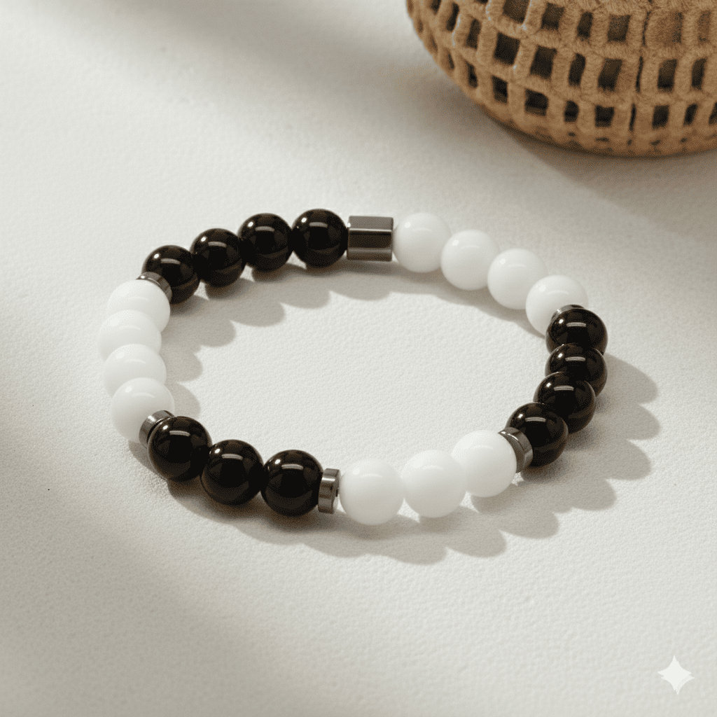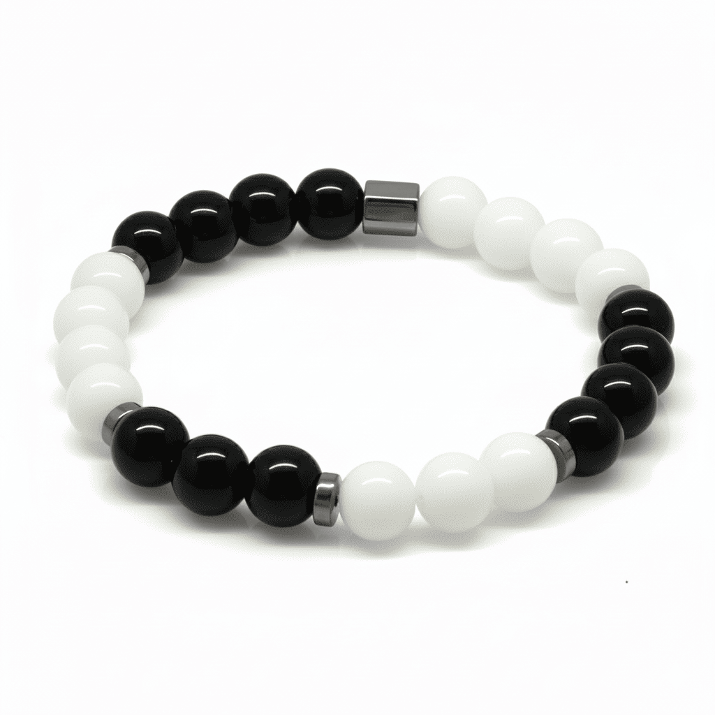 Küre Kesim Siyah Beyaz Jade Oniks Hematit Doğaltaş Erkek Taraftar Bileklik