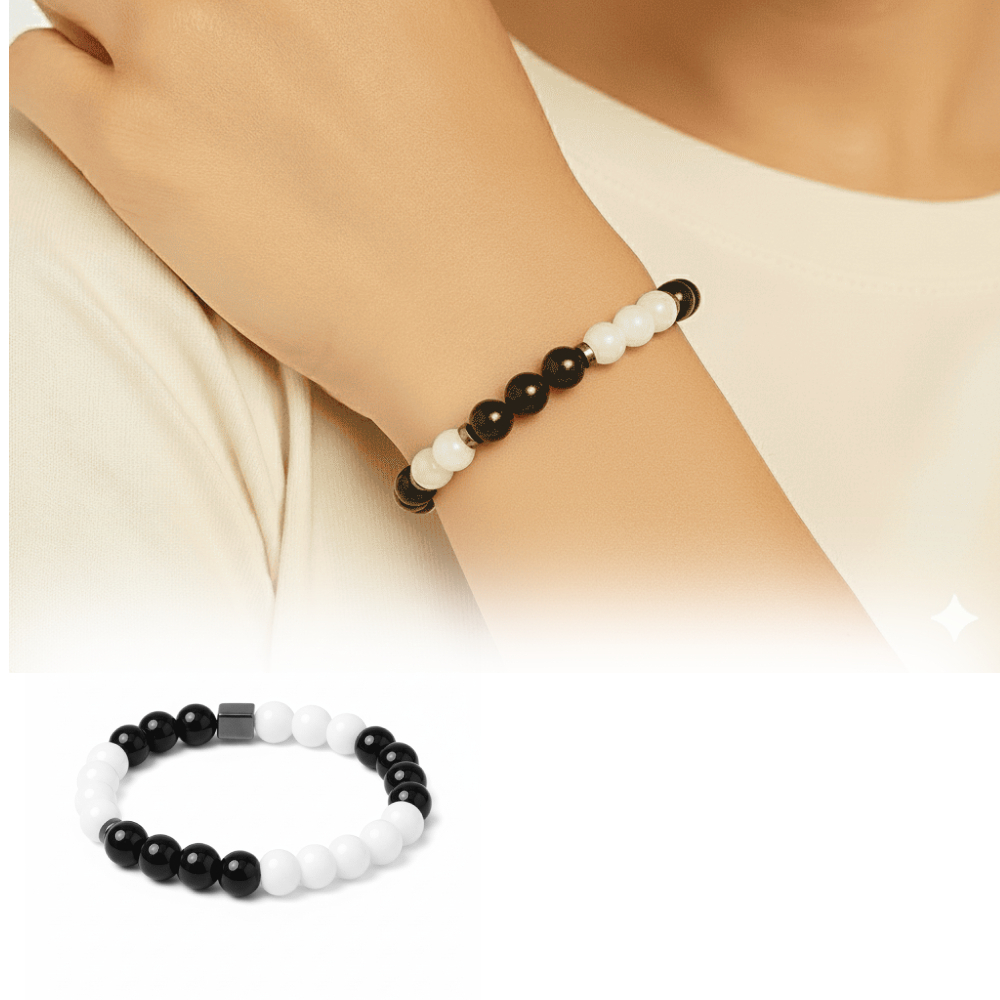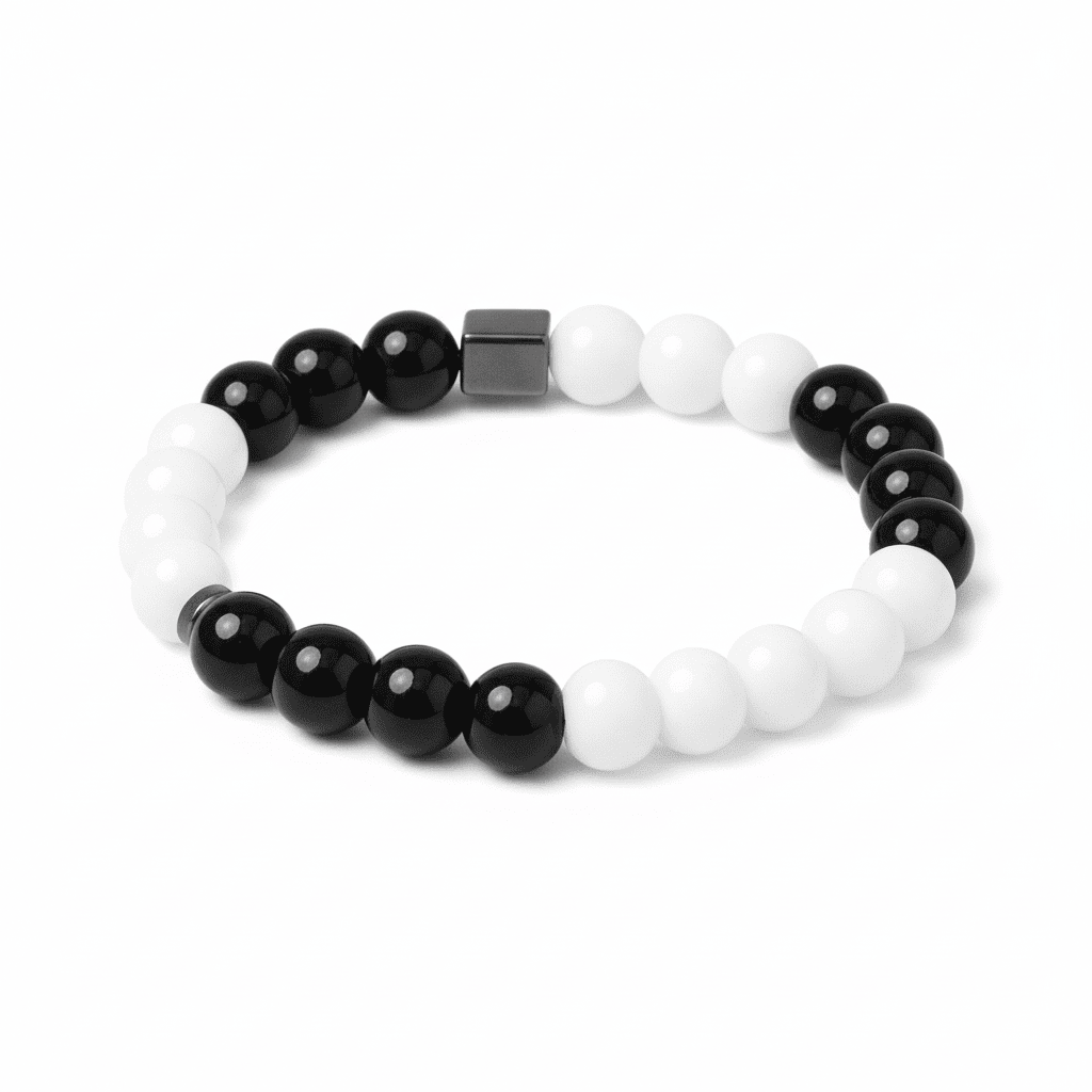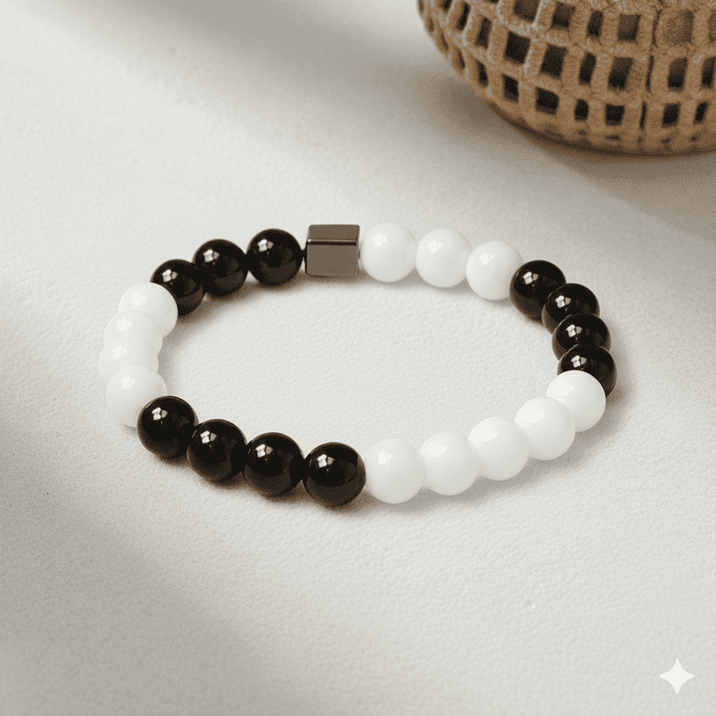 Küre Kesim Siyah Beyaz Jade Oniks Hematit Doğaltaş Kadın Taraftar Bileklik