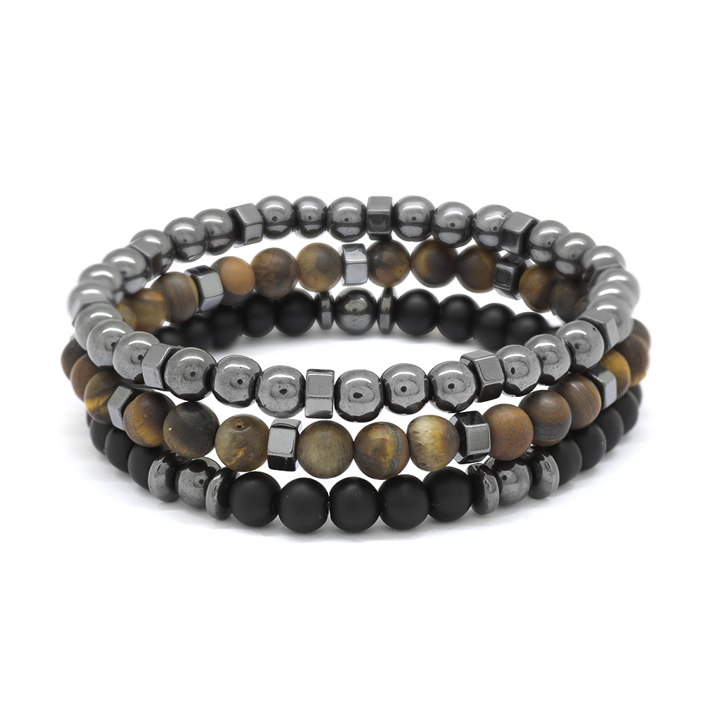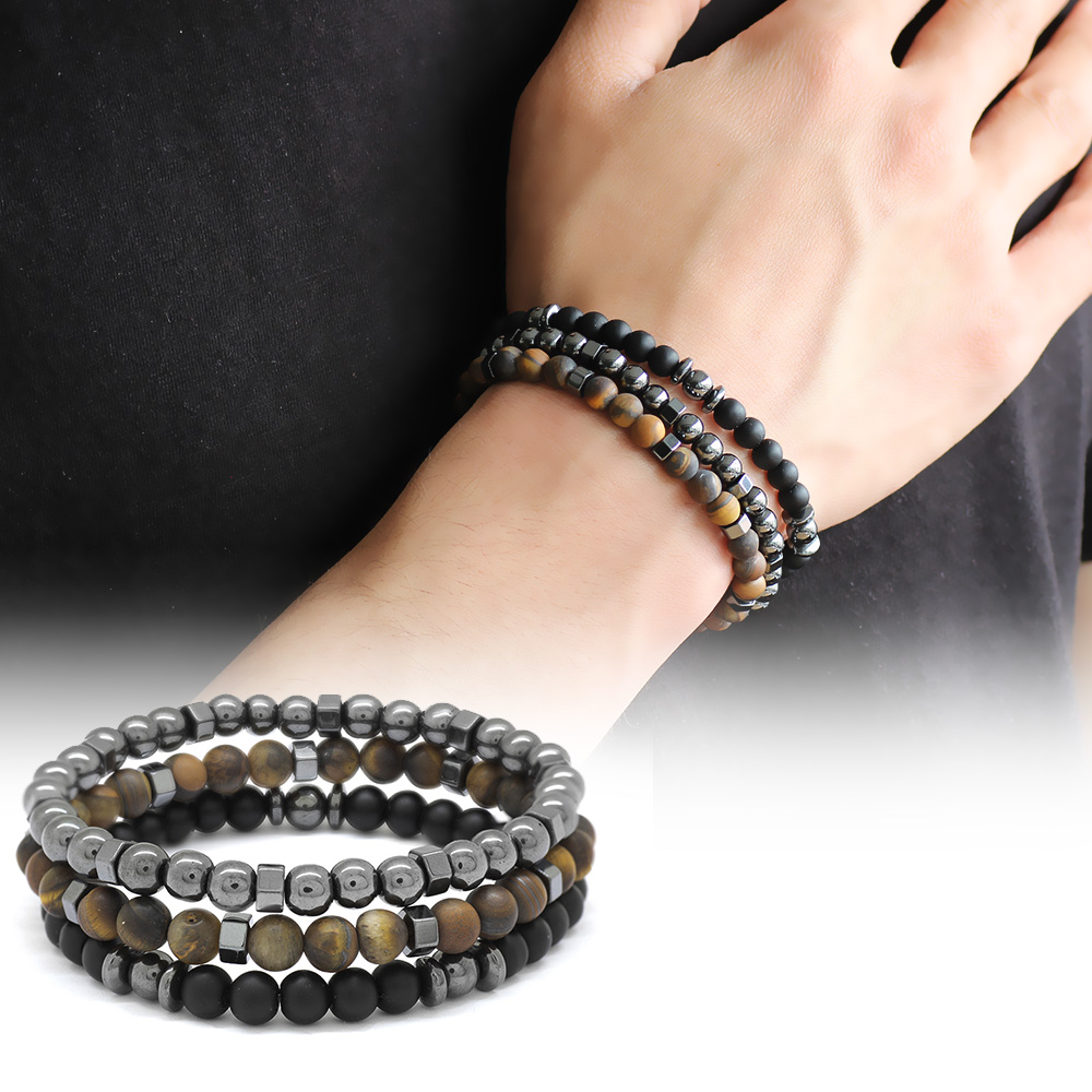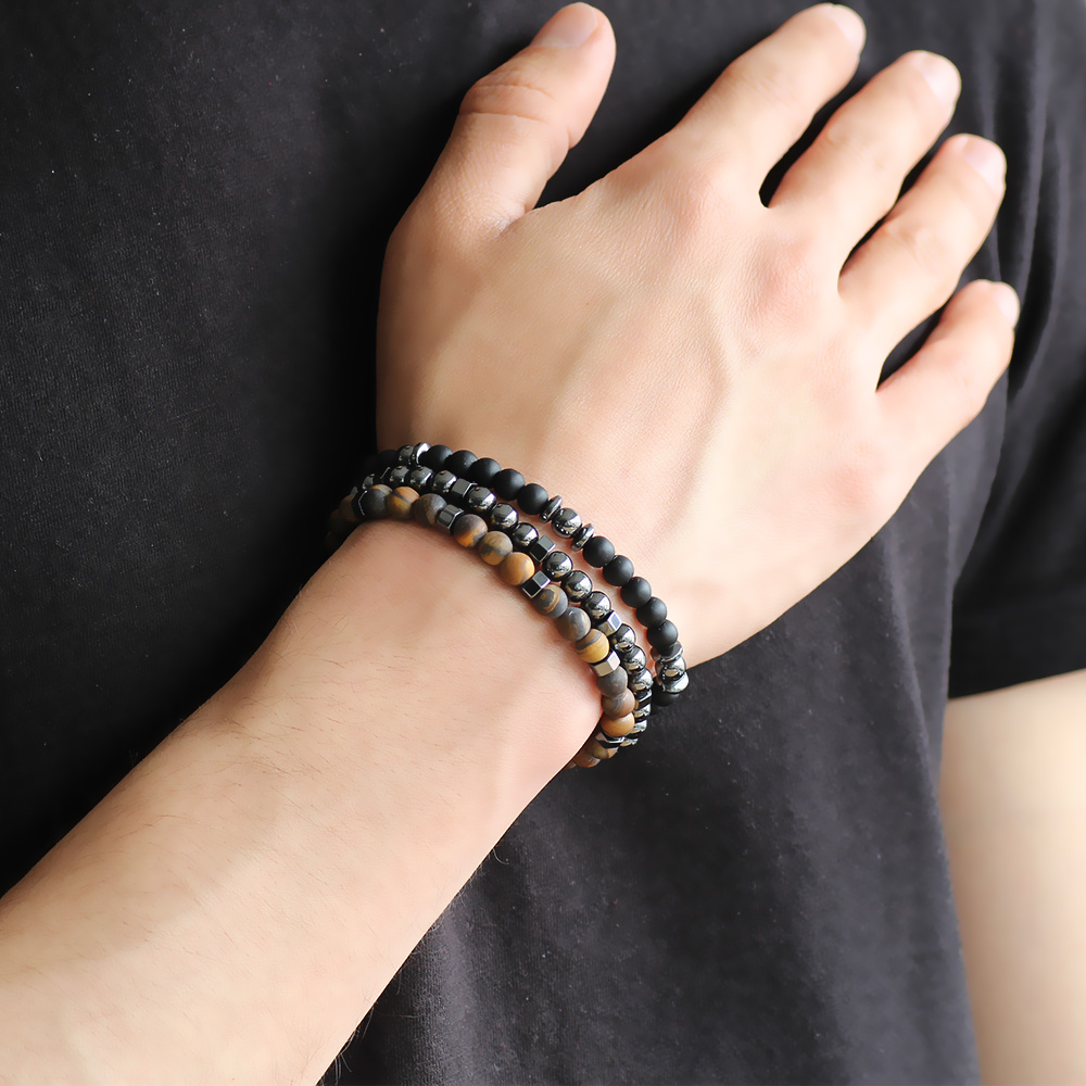 Küre Kesim Siyah Oniks Kaplan Gözü Hematit Kombinli Doğaltaş Bileklik