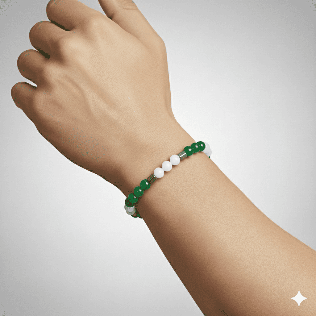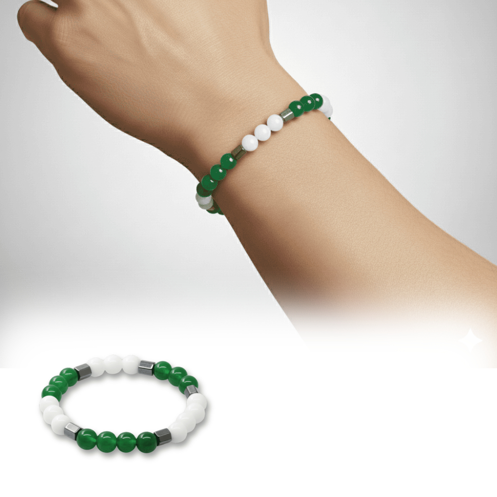 Küre Kesim Yeşil Beyaz Jade Hematit Doğaltaş Erkek Taraftar Bileklik