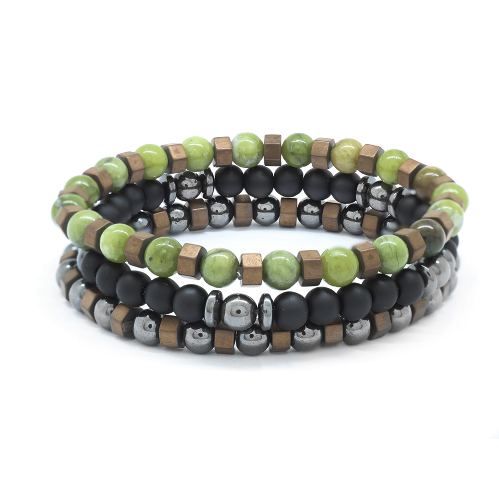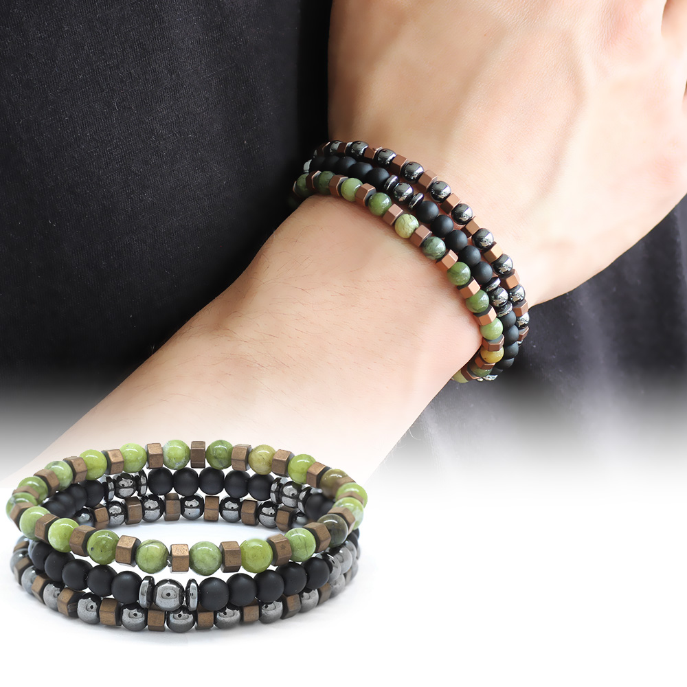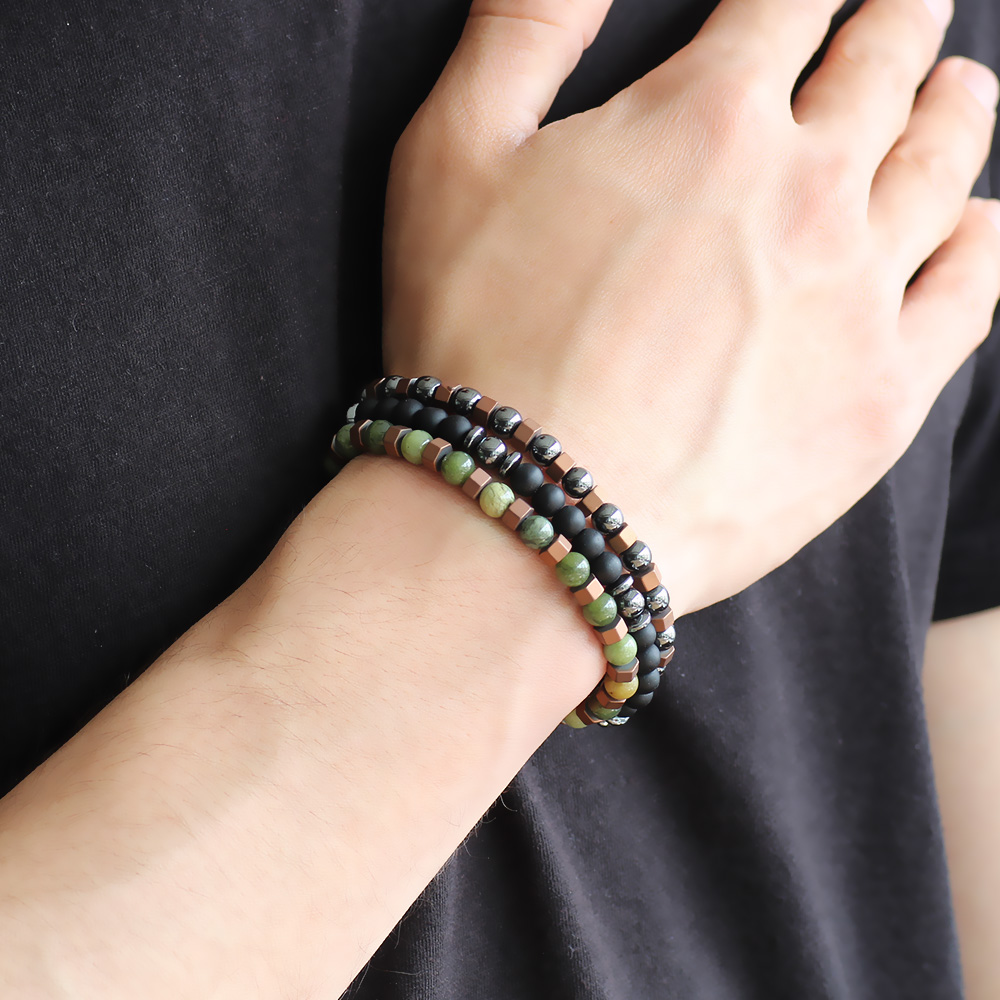Küre Kesim Yeşil Yeşim Oniks Hematit Kombinli Doğaltaş Bileklik
