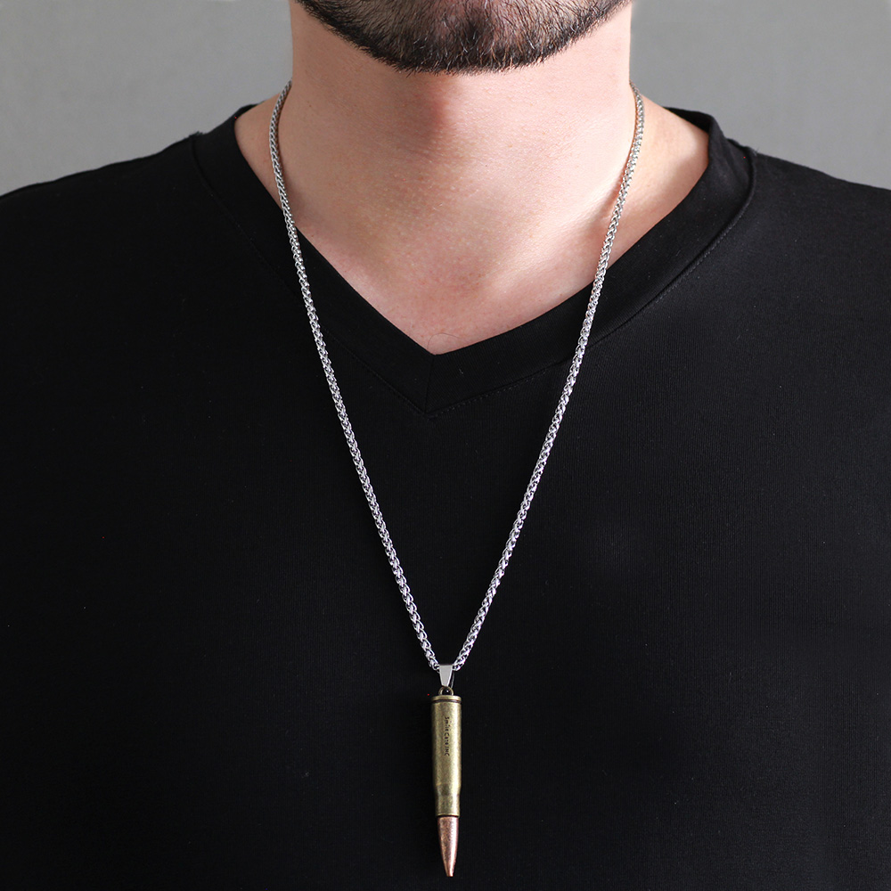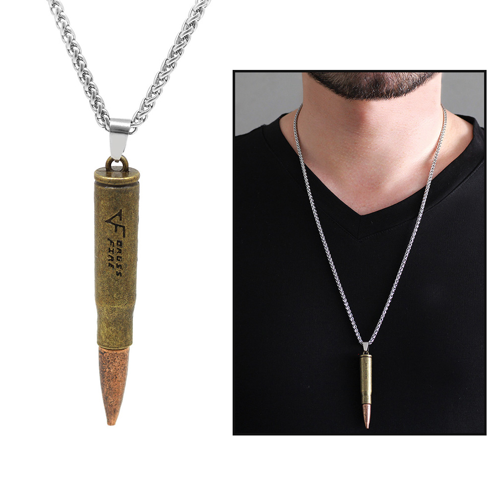 Kurşun Tasarım Otantik Sarı Renk Çelik Erkek Kolye