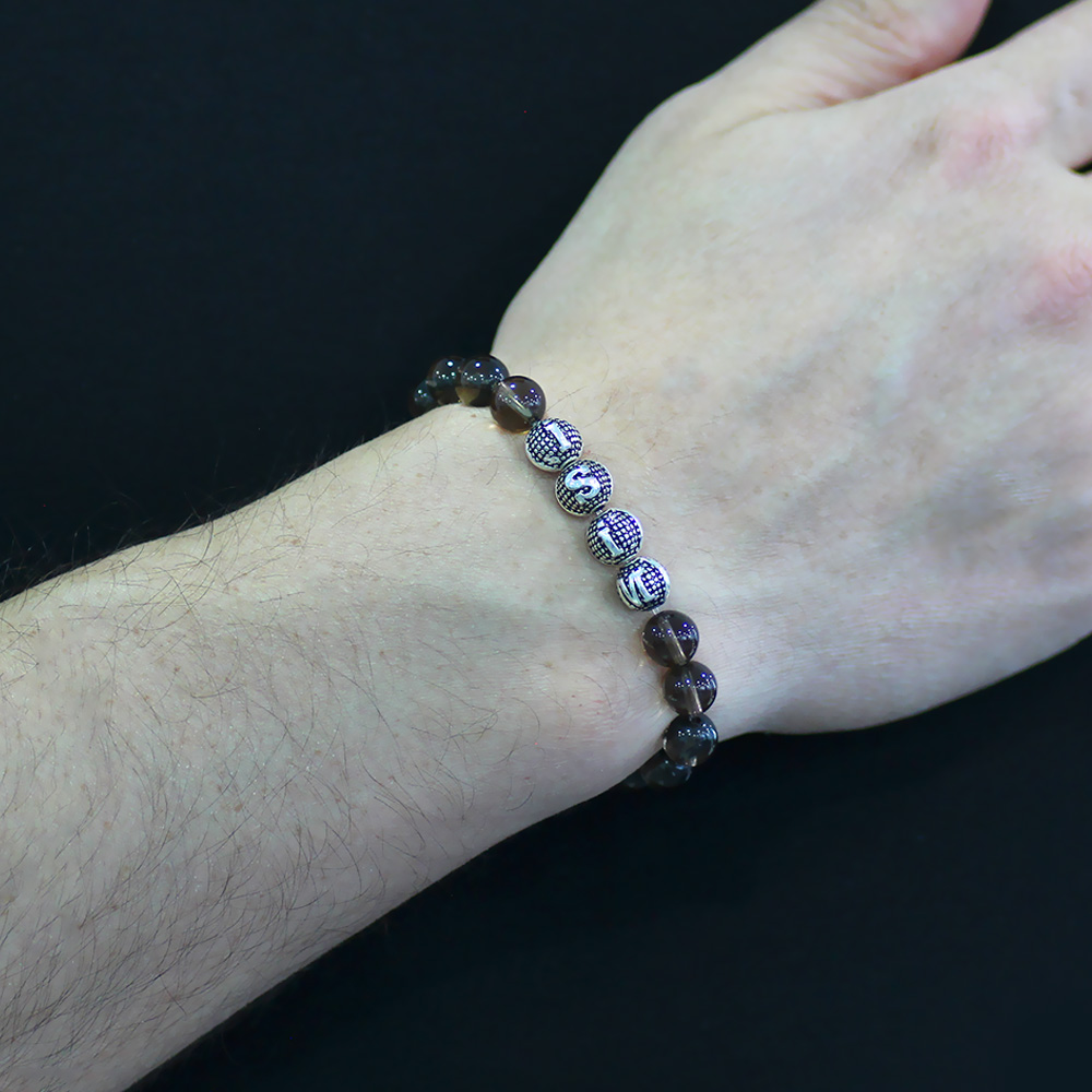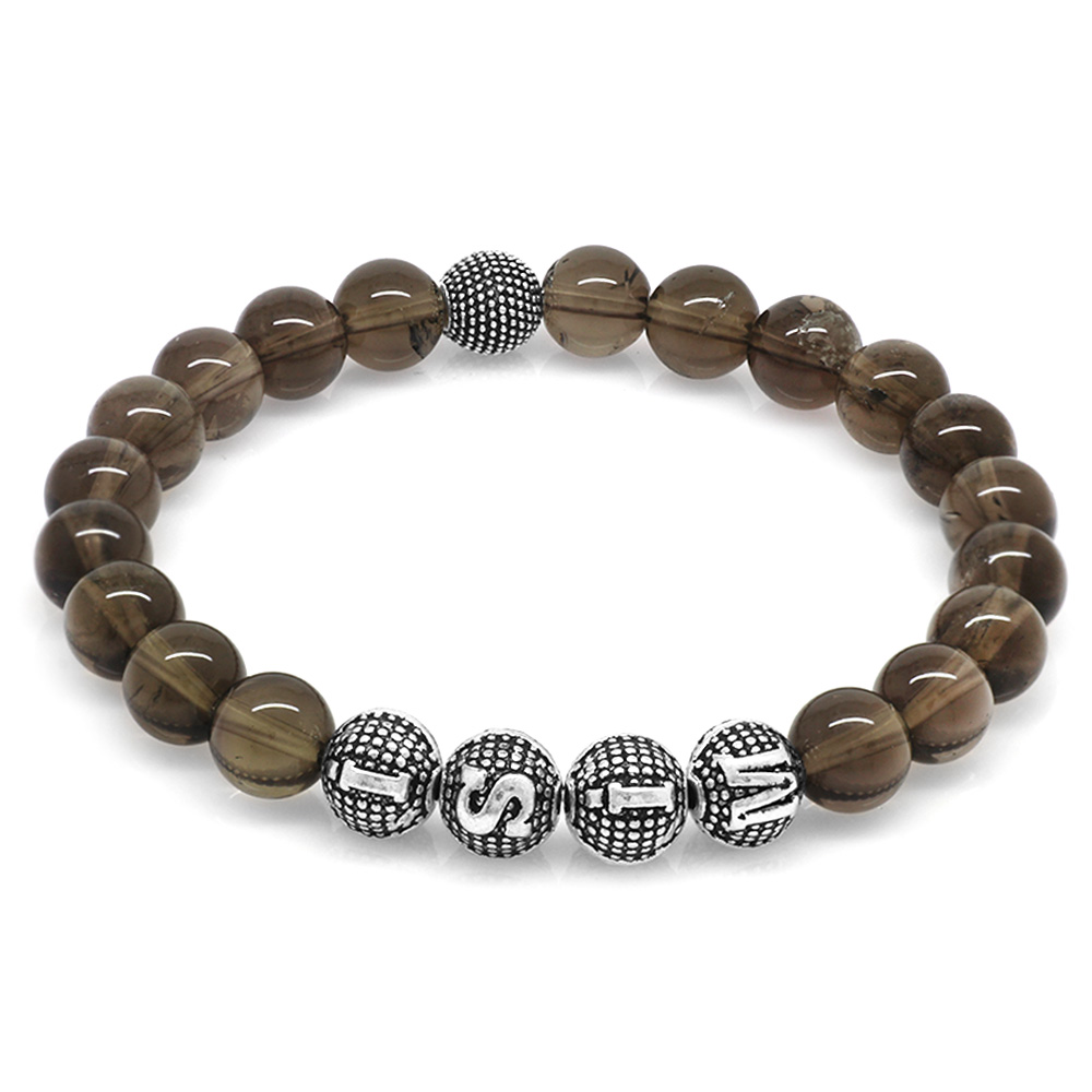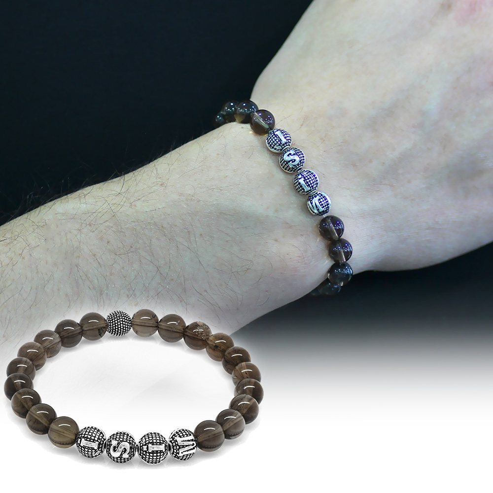 Kuvars Doğaltaş Bileklik - İsme Özel Yazılı - Metal Kombinli - Küre Kesim